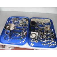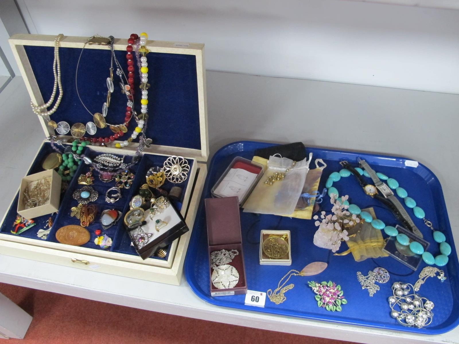 A Mixed Lot of Assorted Costume Jewellery, including brooches, bead and other necklaces, dress rings, decorative reverse painted Mizpah brooch, pendants on chains, wristwatches, etc, contained in a jewellery box.