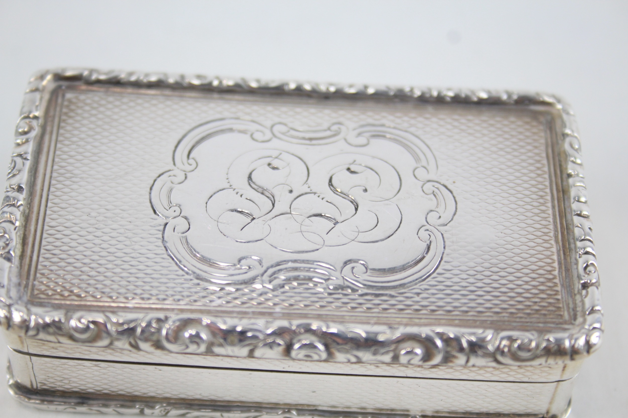Antique Victorian 1853 Birmingham Sterling Silver Rectangular Snuff Box (60g)