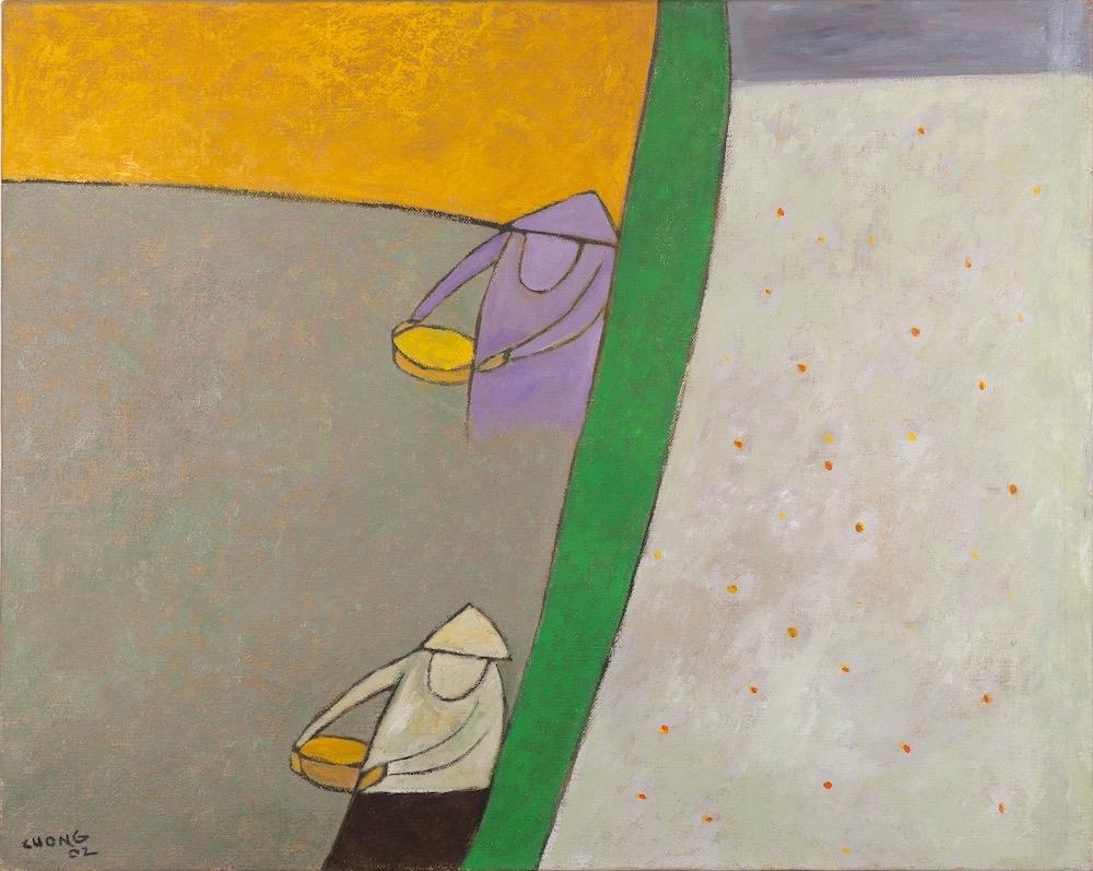 Le Thiet Cuong (Vietnamese, b.1962) 'Daily Life' Acrylic on Canvas 100 x 80 cm Signed and dated '02 lower left