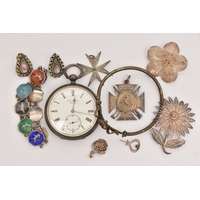 A SMALL ASSORTMENT OF JEWLLERY, to include a continental yel...