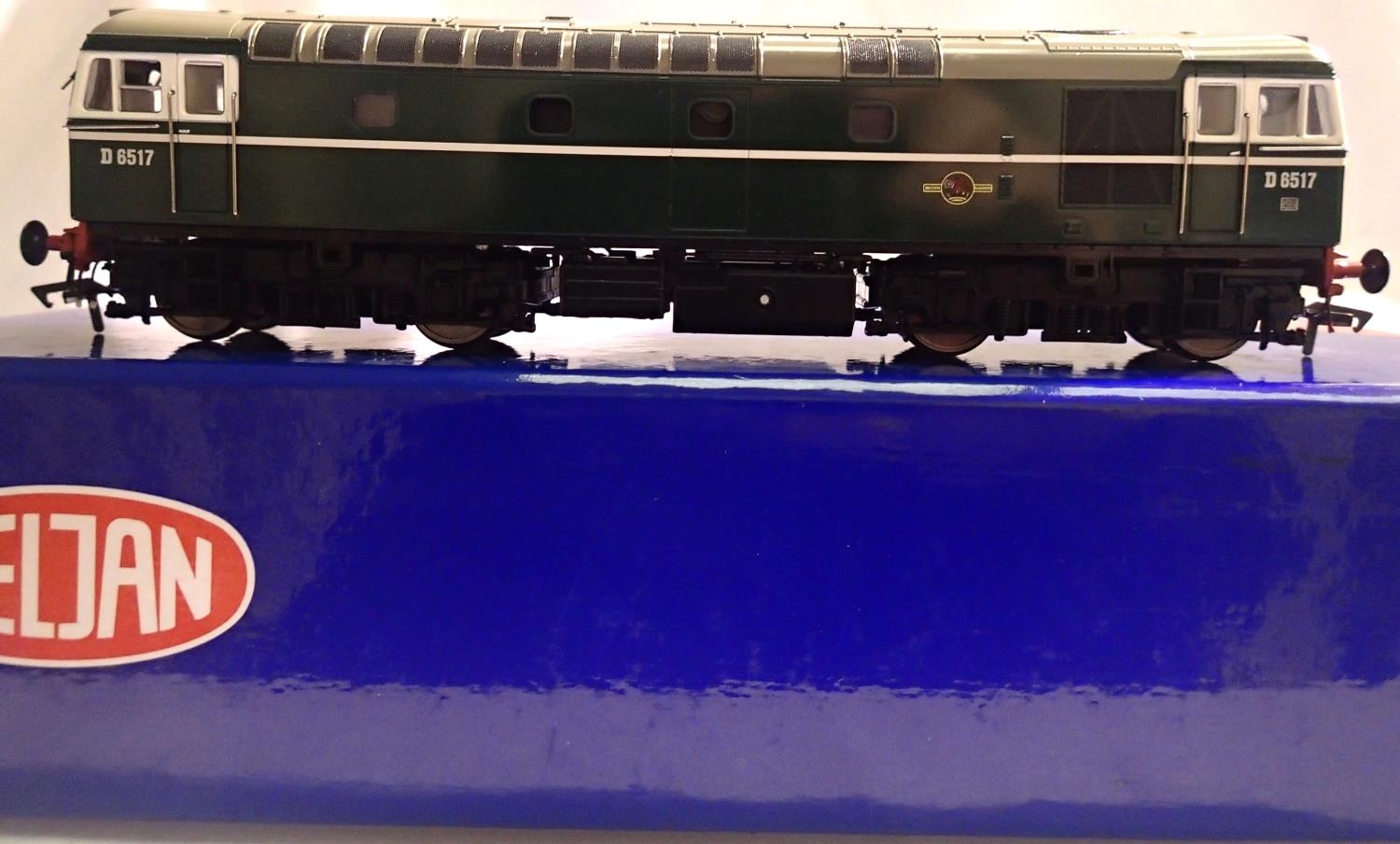 OO scale Heljan 33621, class 33 diesel, Gloss Green D6517, fitted ESU Loksound (untested), box with storage wear. P&P Group 1 (£14+VAT for the first lot and £1+VAT for subsequent lots)