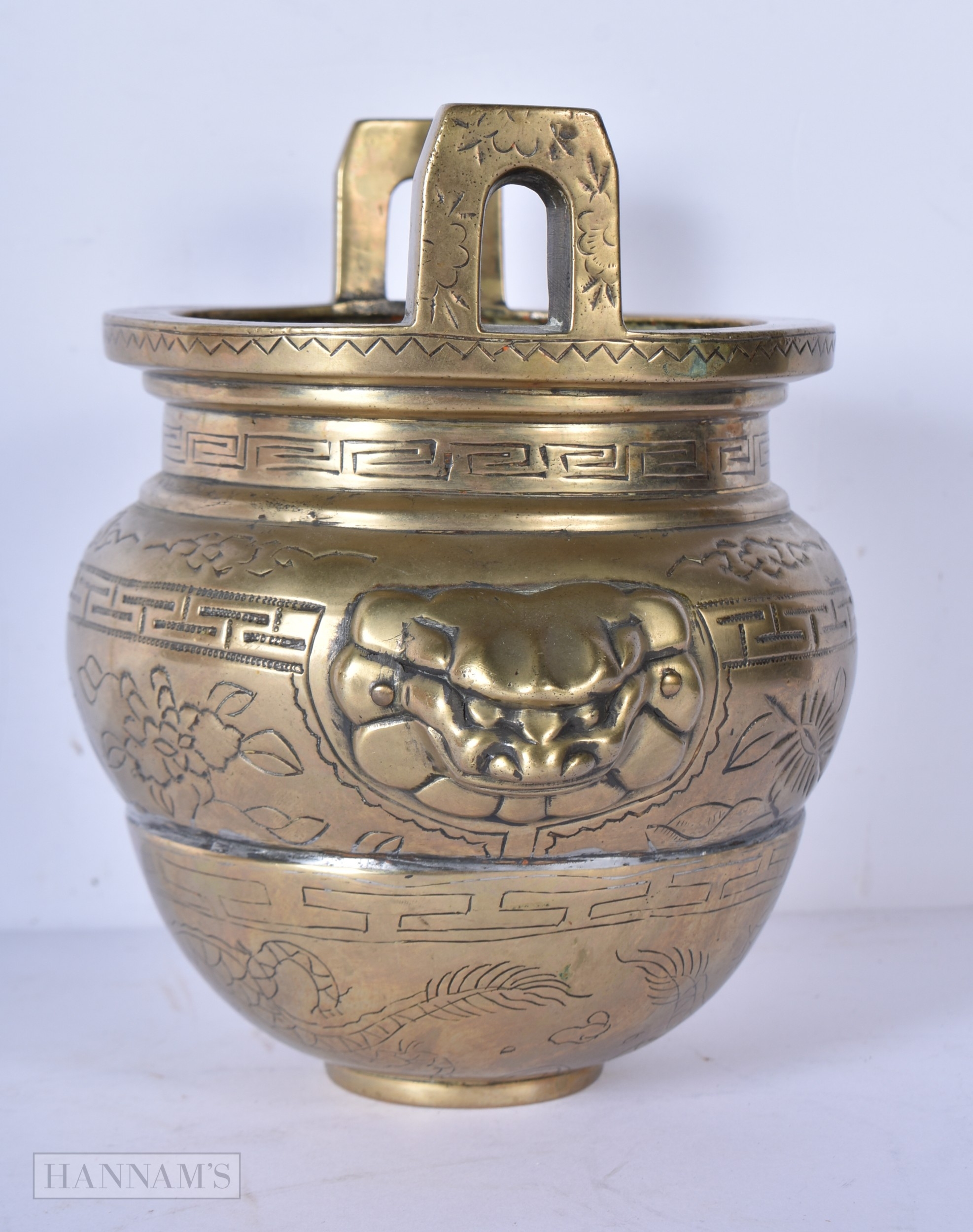 A Chinese bronze Censer decorated with Dragon 16 x 15cm