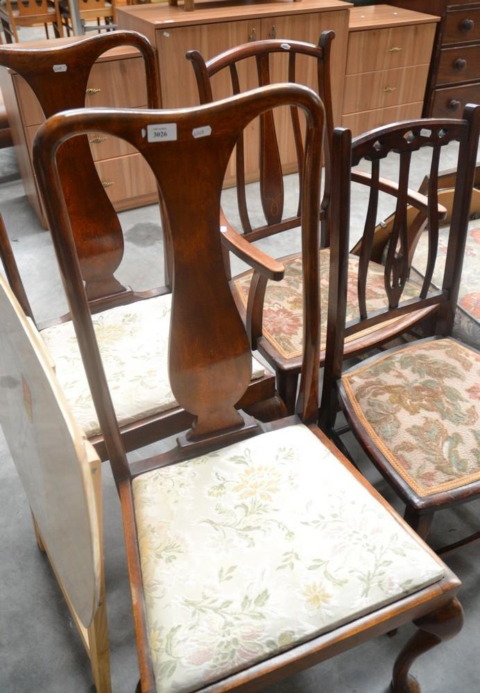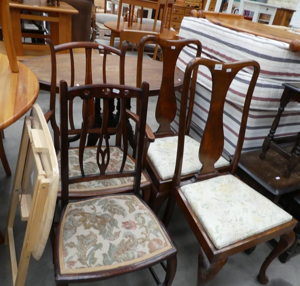 2 Inlaid Edwardian Handchairs, 2 Queen Anne Leg Dining Chairs & Modern Folding Table