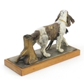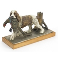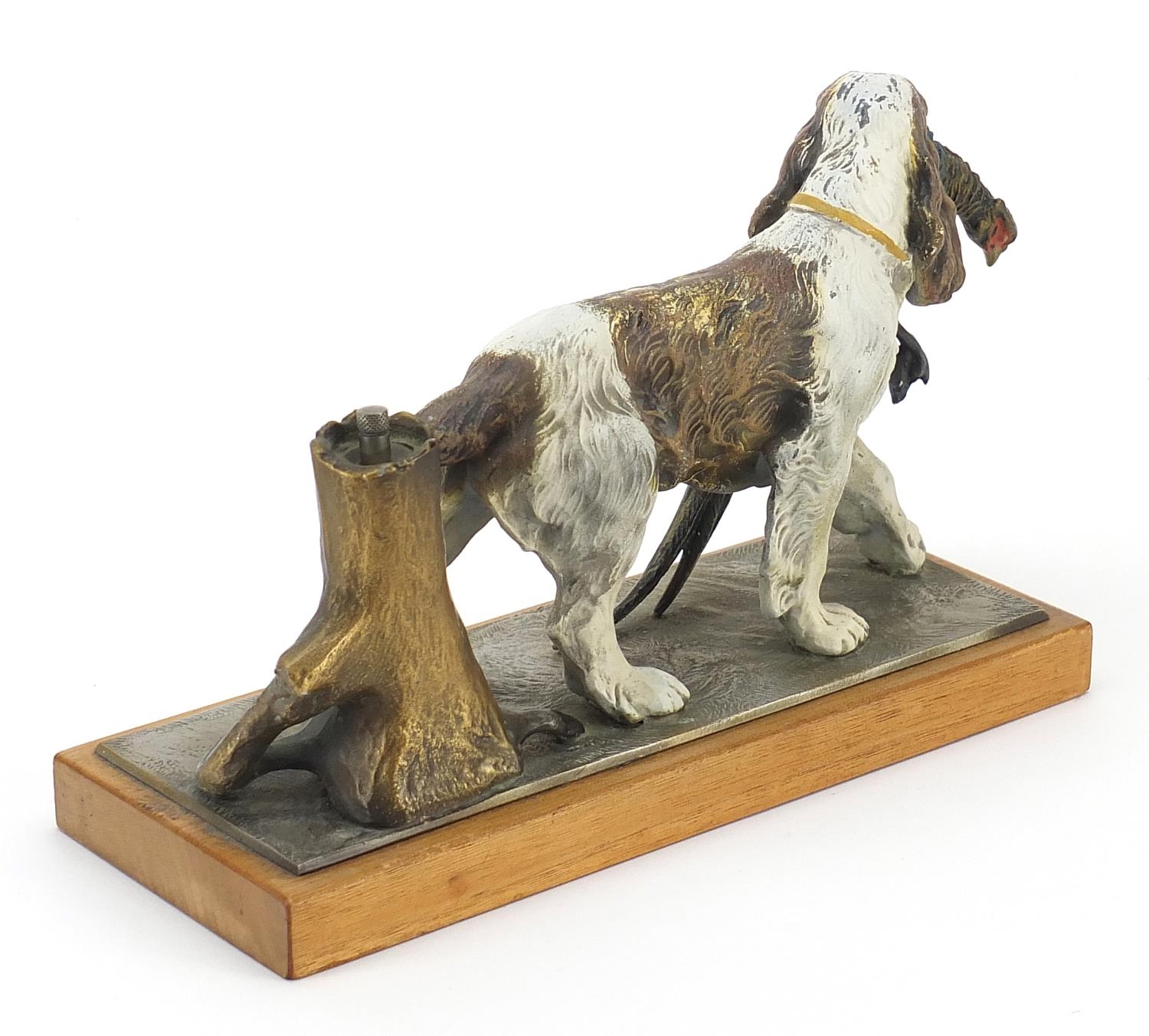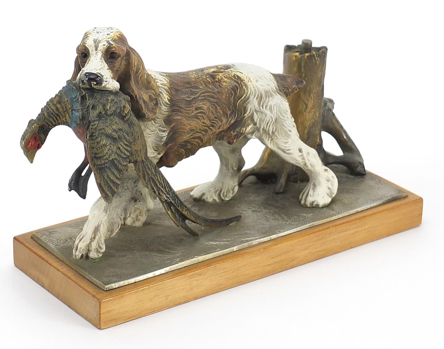 Austrian cold painted spelter table lighter in the form of a Spaniel with game, 27cm wide