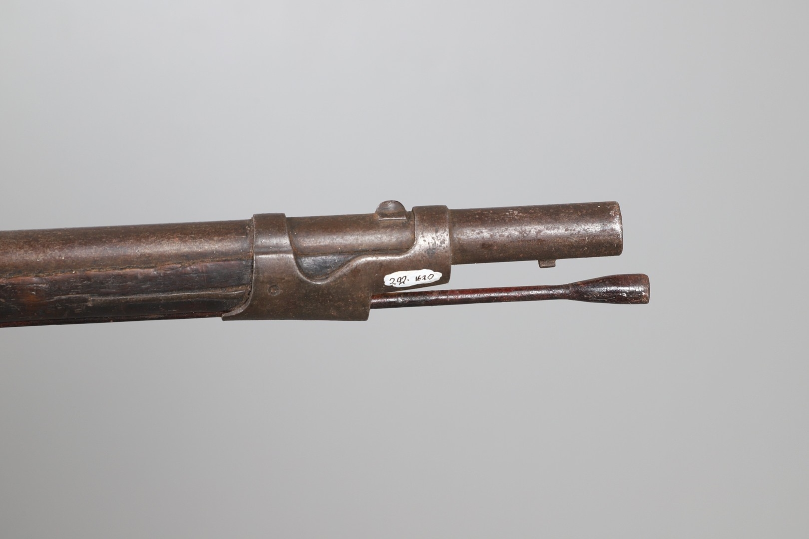 Burn damage to one side, scuffing and marking in various places. Collection number to barrel.