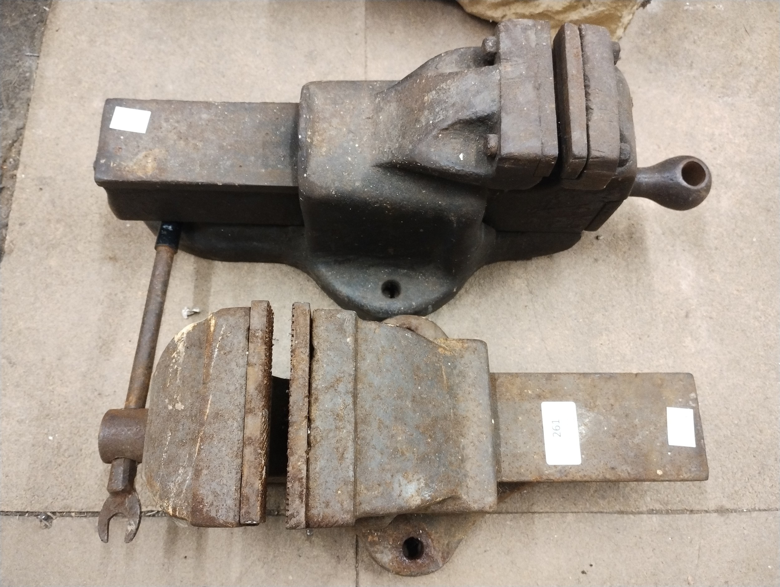Two large industrial vices