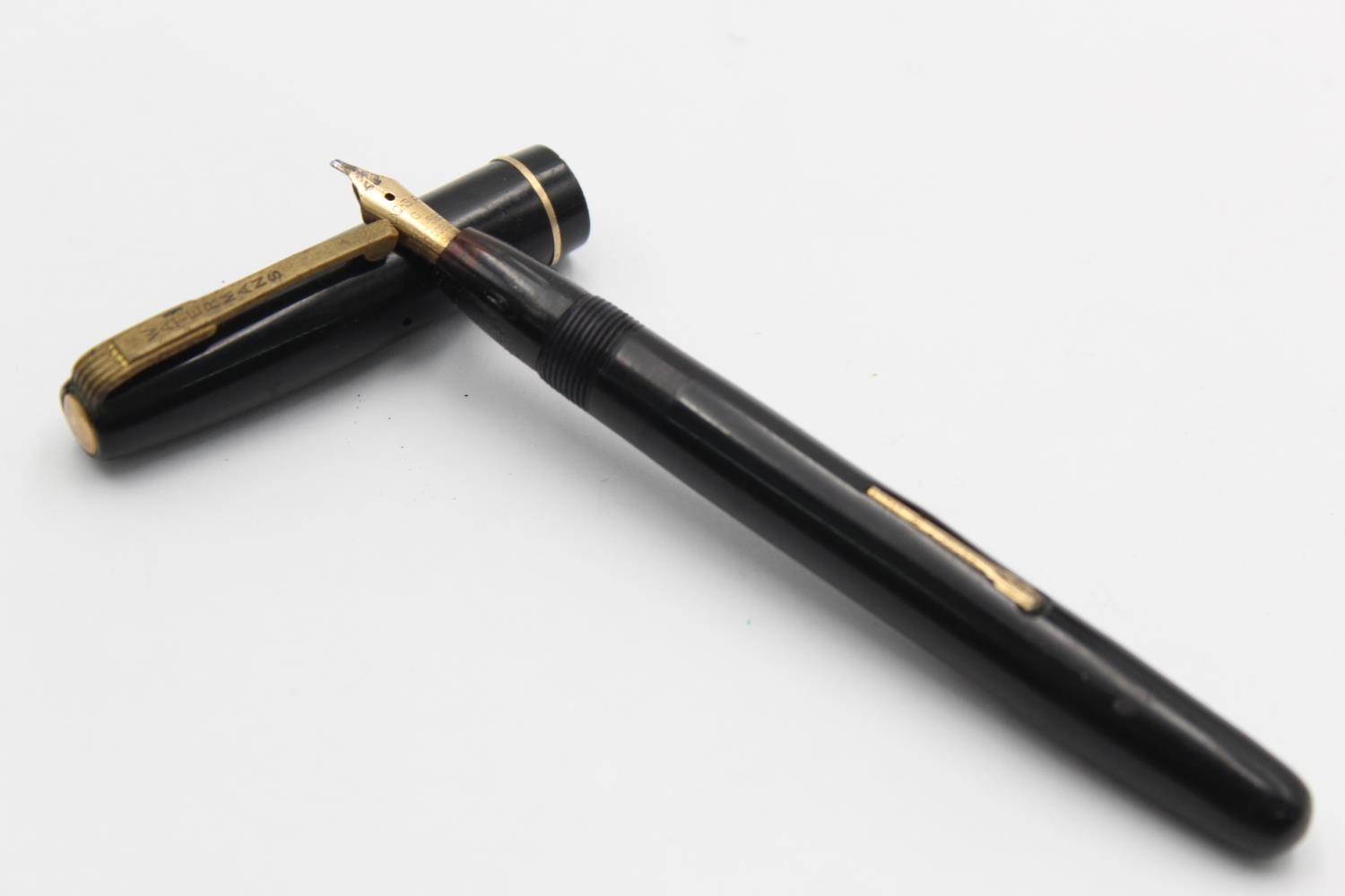 Vintage WATERMAN W2 Black FOUNTAIN PEN w/ 14ct Gold Nib WRITING