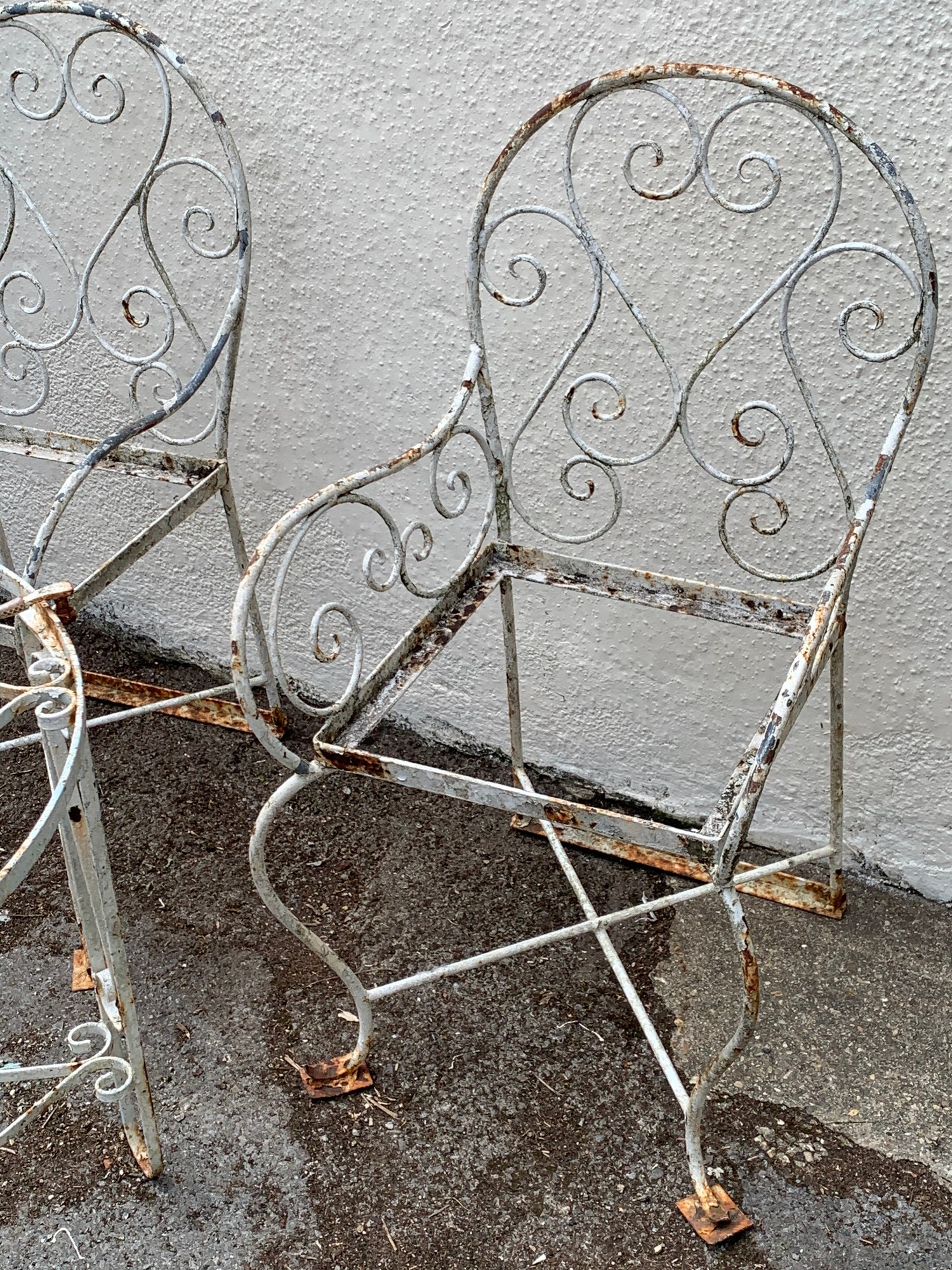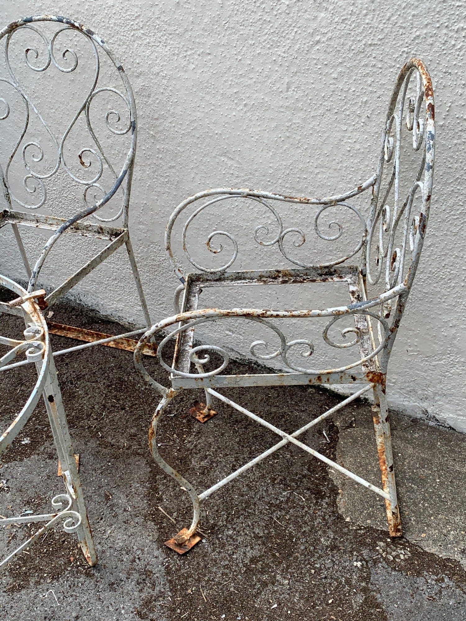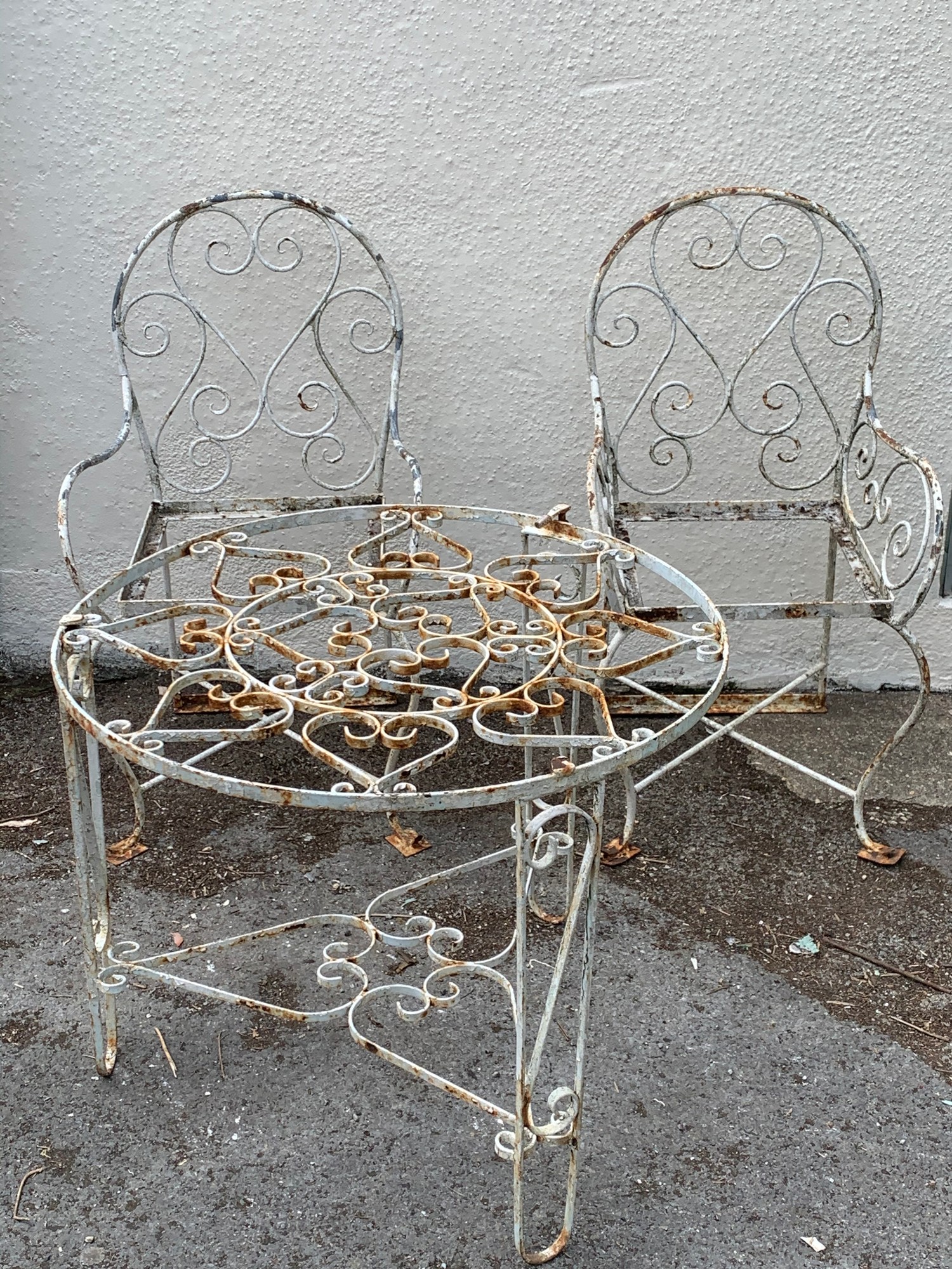 Two Vintage Metal Garden Chairs Along With A Circular Metal Garden Table. (3)