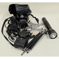 Large tribal drum together with a pair of wooden carvings (3).