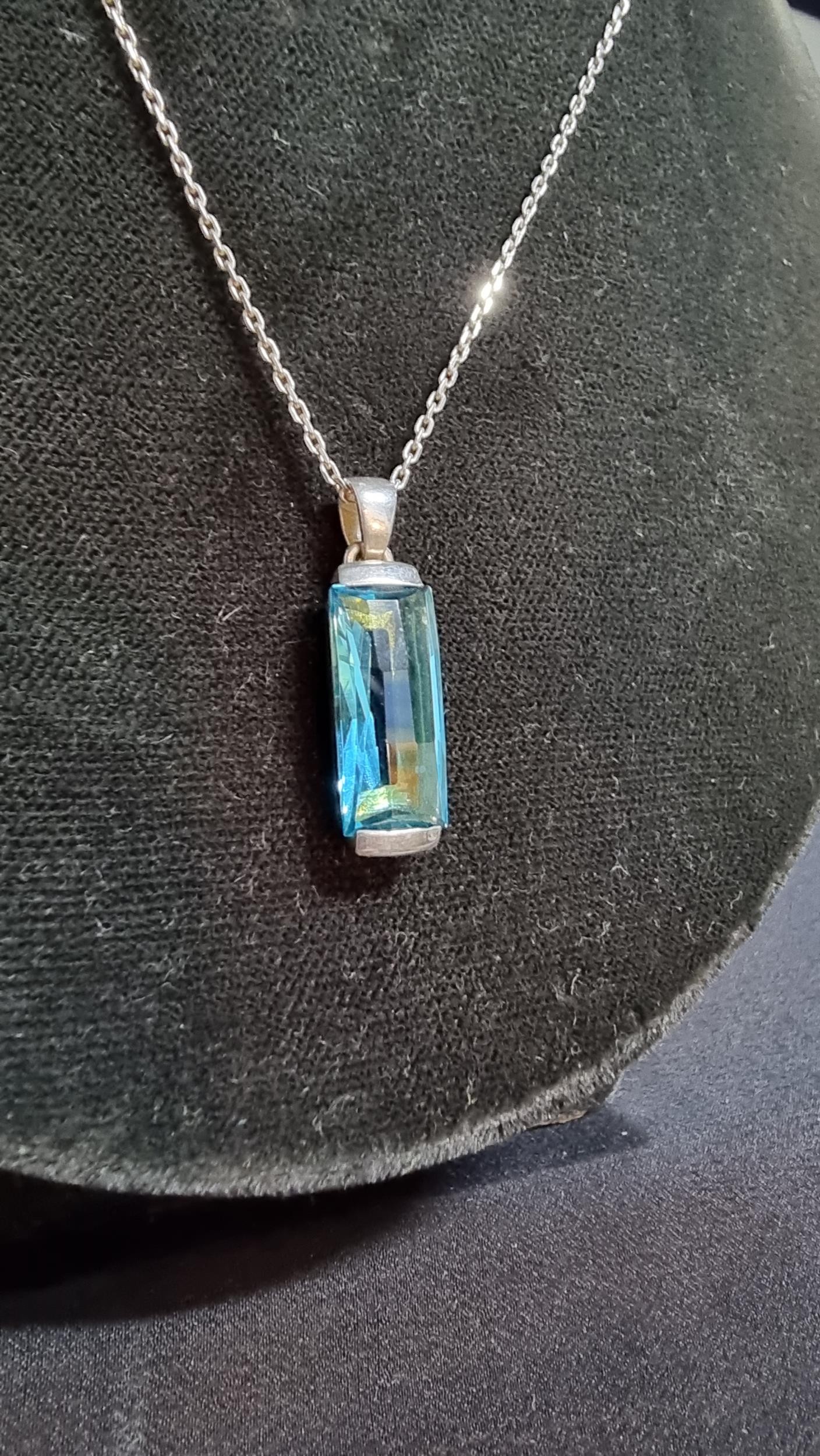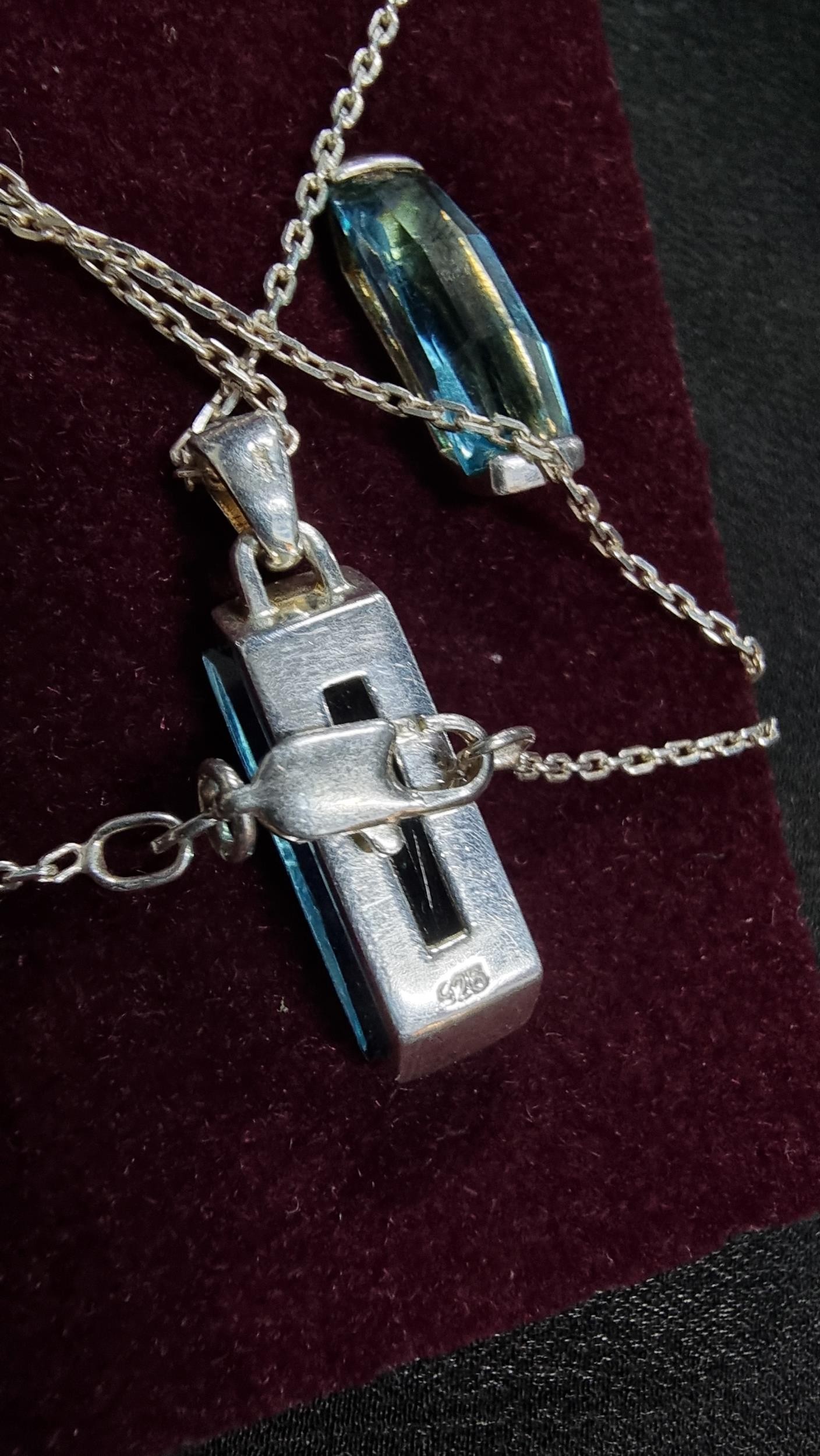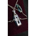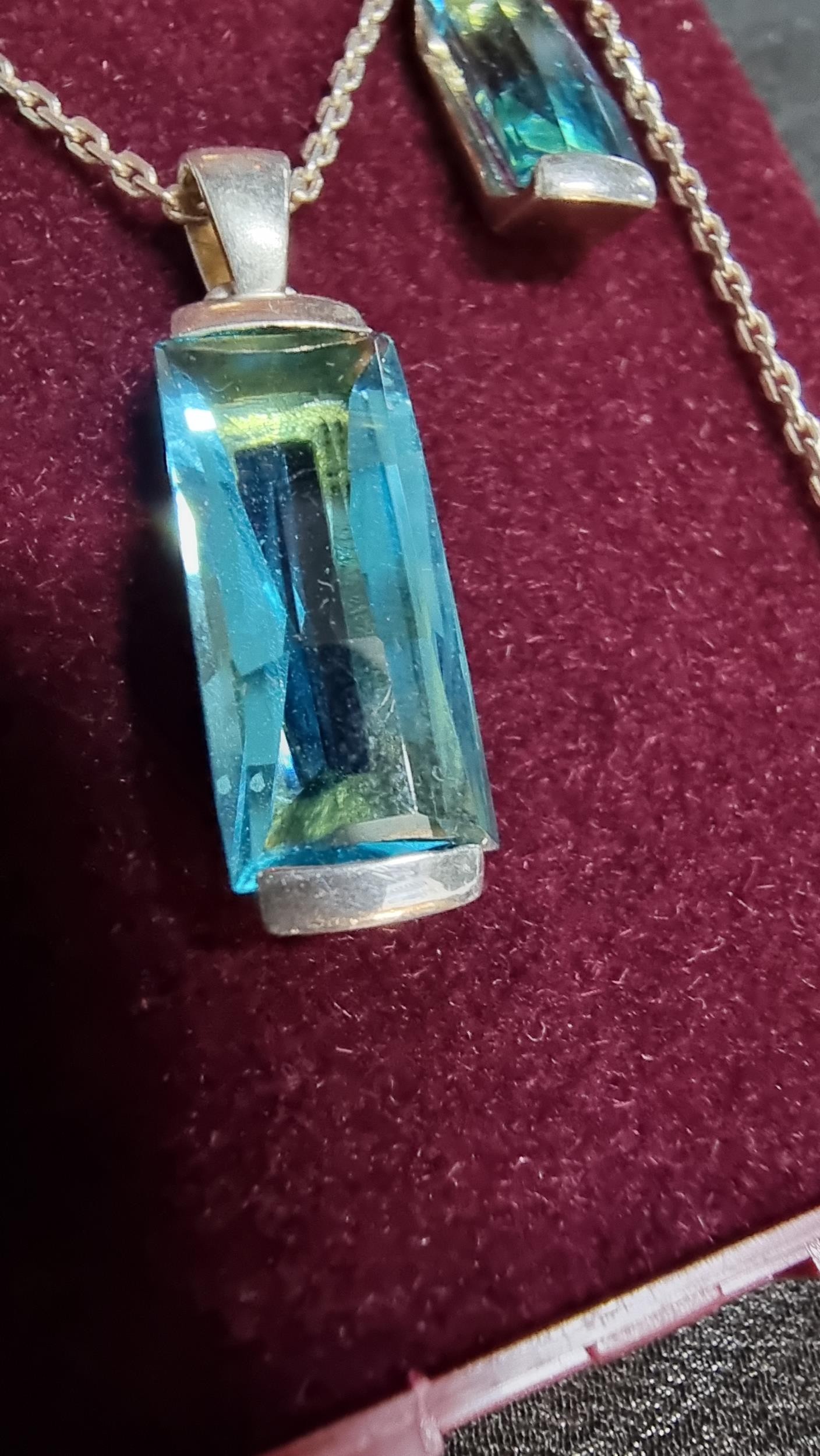 Pretty 925 silver matching jewellery set inset with blue glass cut crystal that reflect the light very well - necklace is set on a 18 inch 925 silver chain