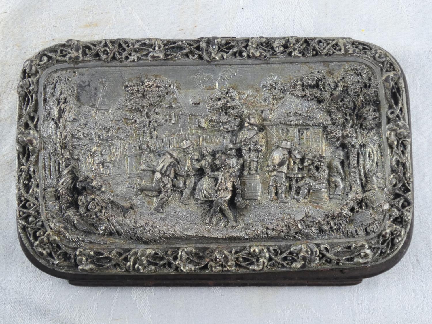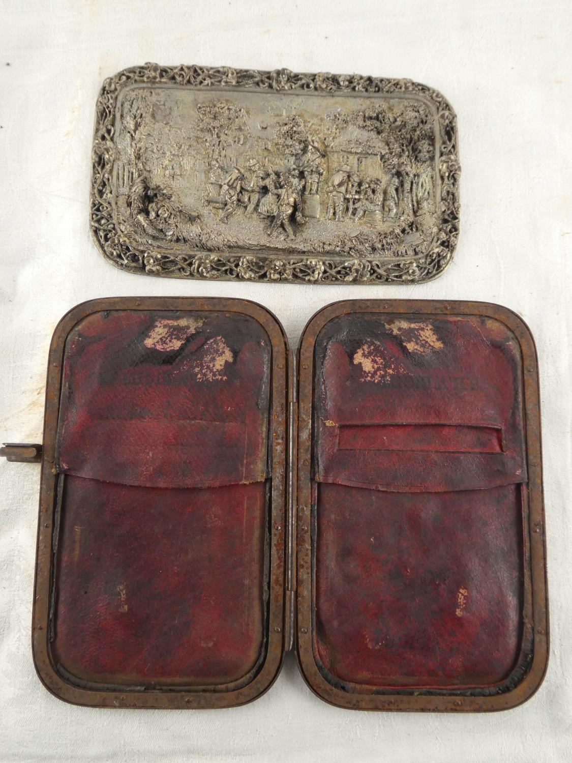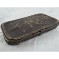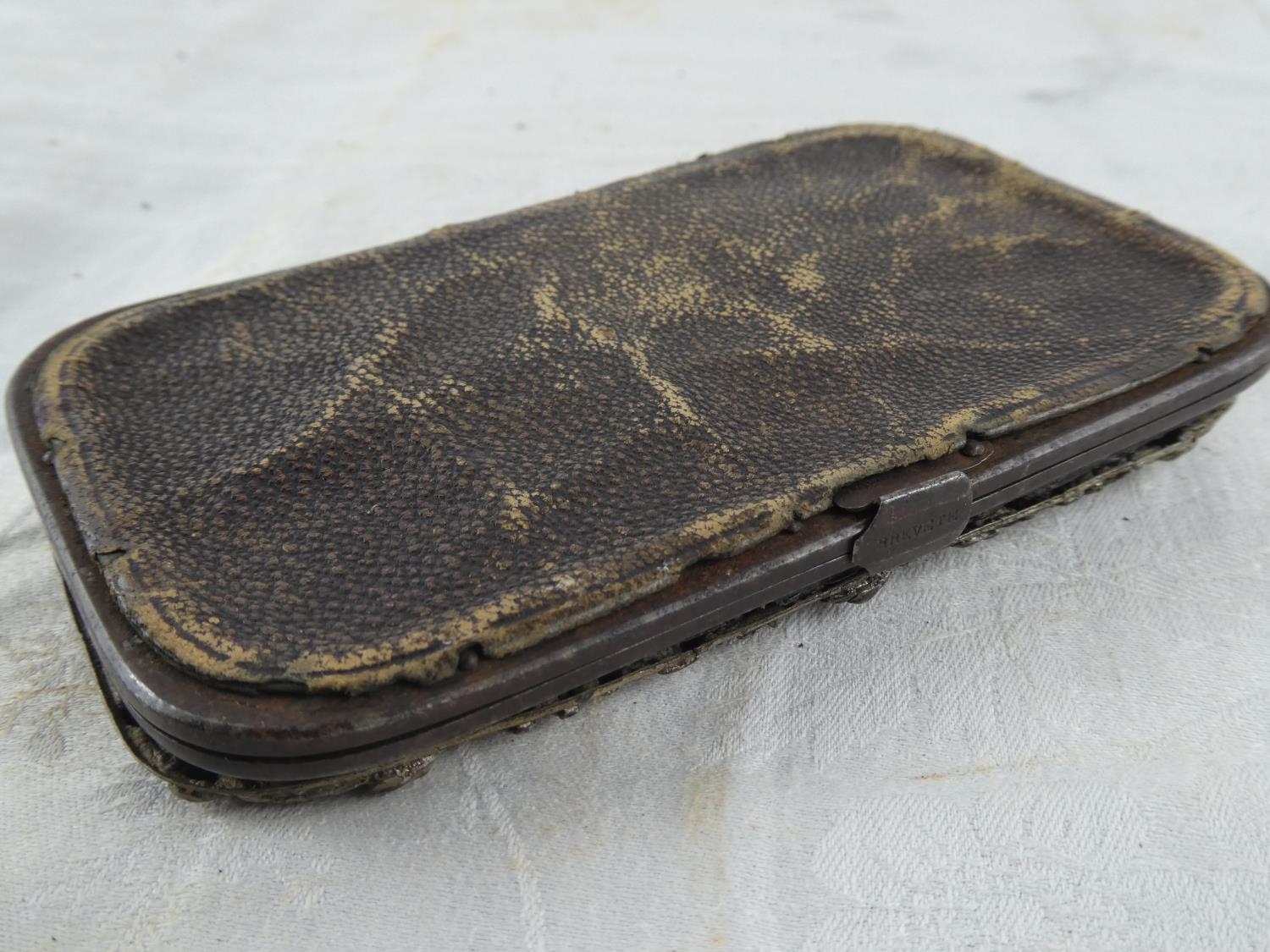 A stunning antique leather purse with decorative metal cover, in need of some restoration.