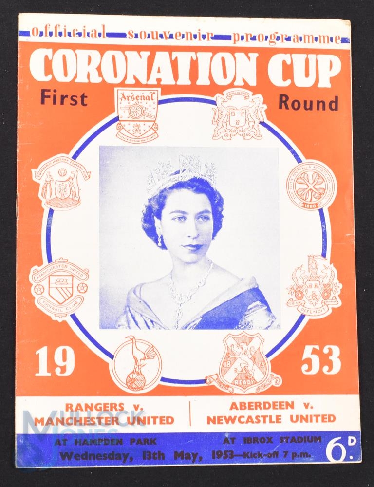 1952/53 Coronation Cup Glasgow Rangers v Manchester Utd match programme (also covers Aberdeen v Newcastle Utd) double issue 13 May 1953; fair/good. (1)