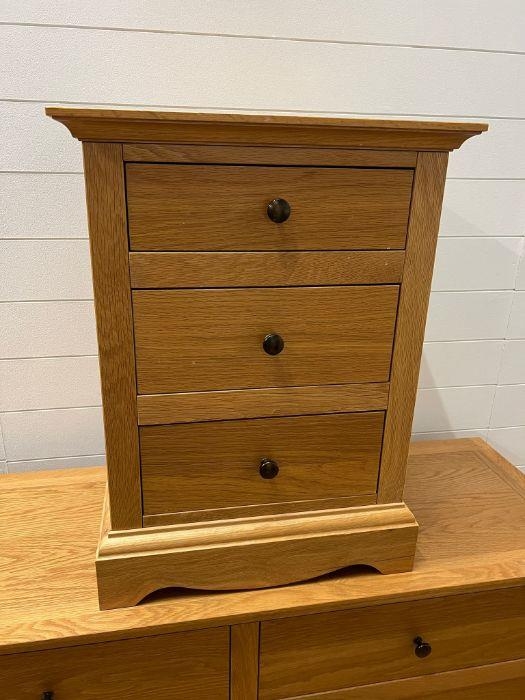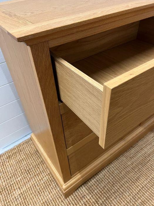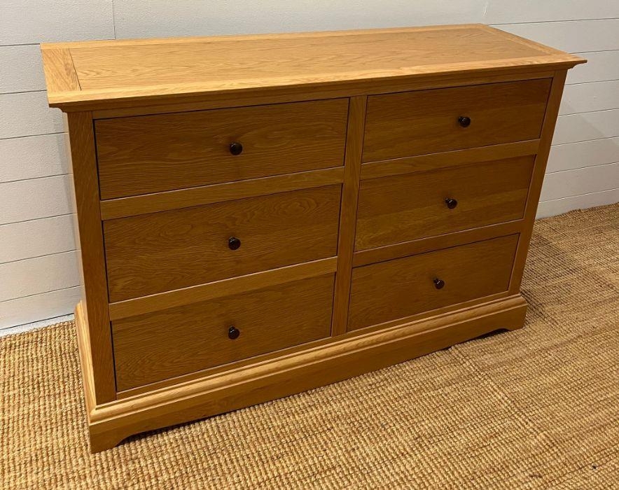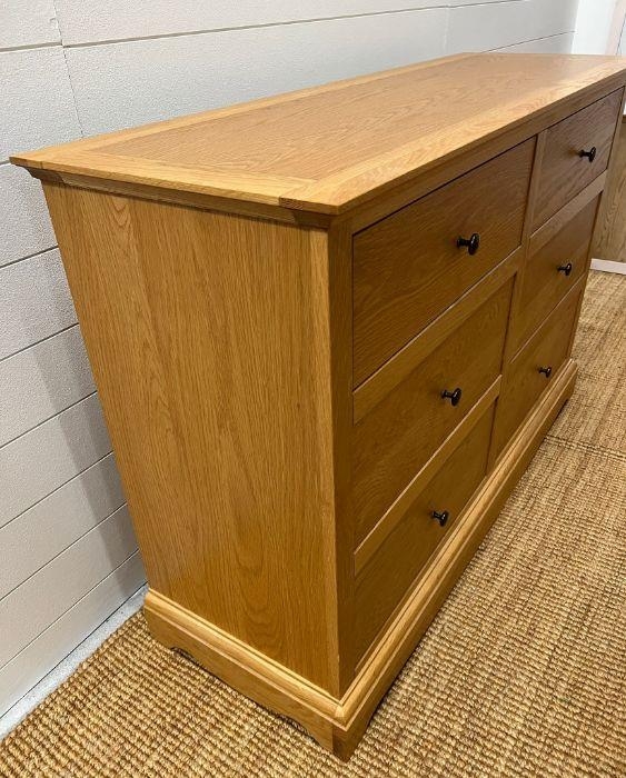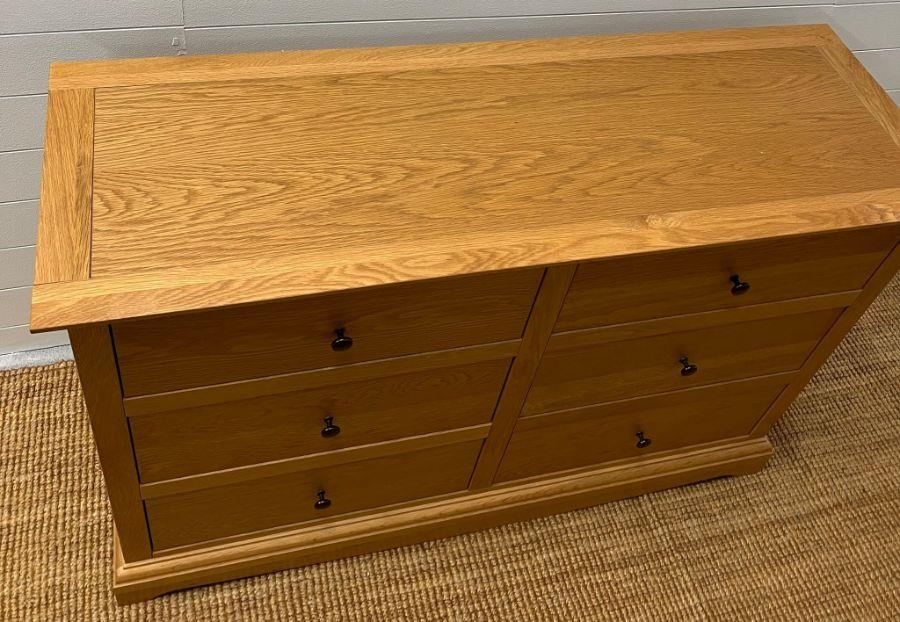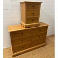 A light oak chest of drawers along with a single bedside (H88cm W132cm D45cm) (Bedside H68cm W51cm D45cm)