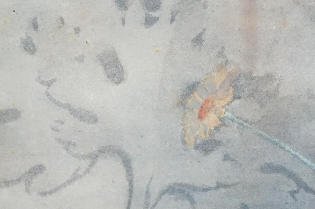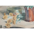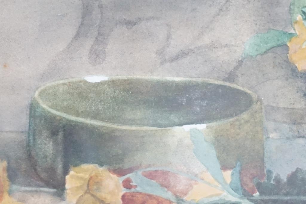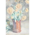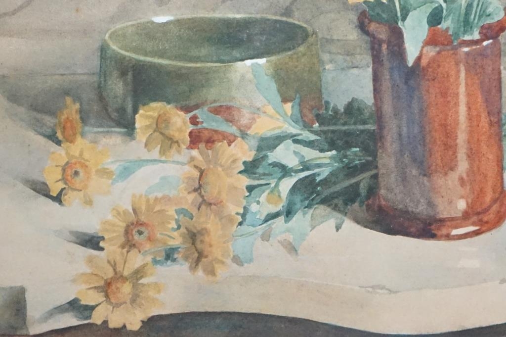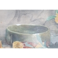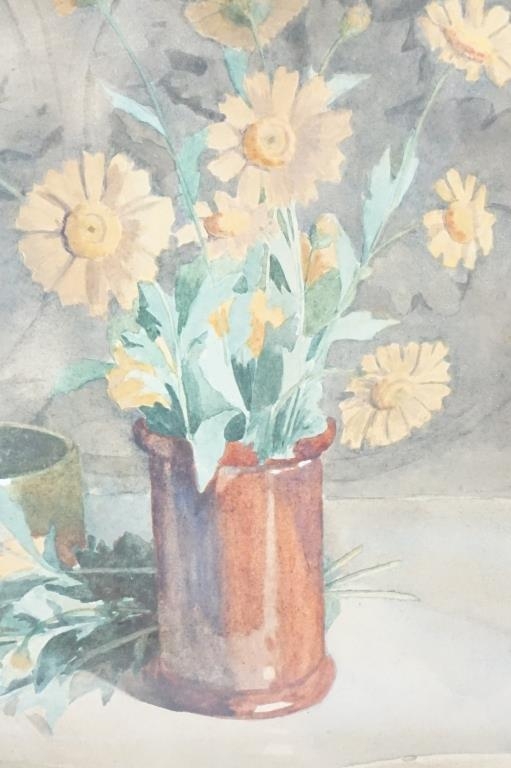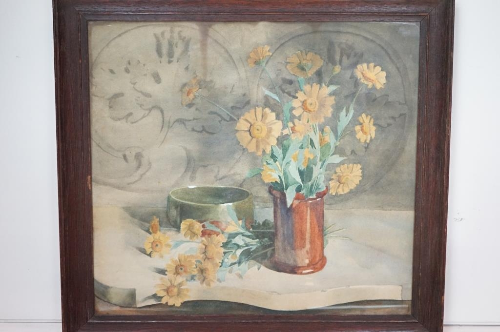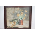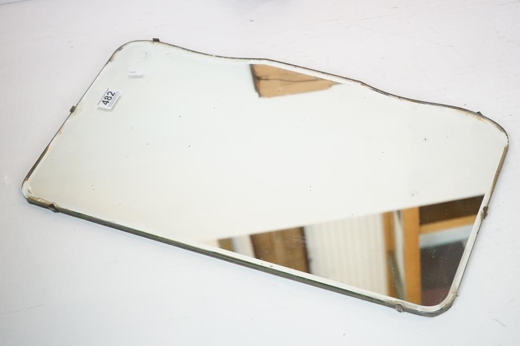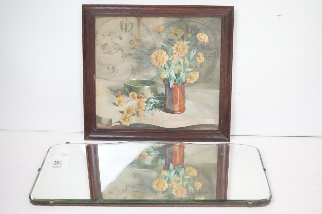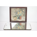 Art Deco Bevelled Edge Mirror, 62cm x 34cm together with a Print of Still Life Flowers