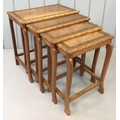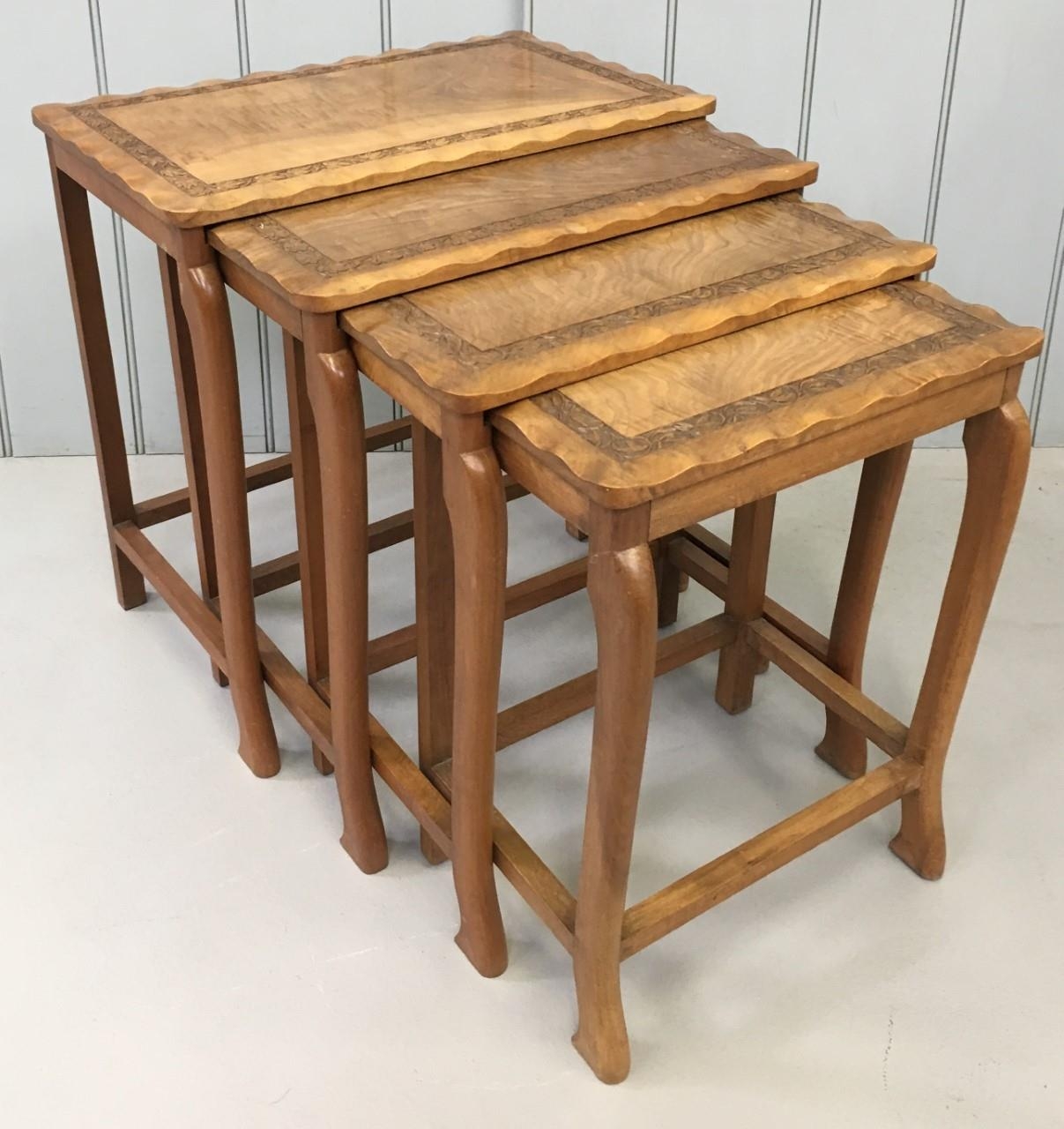 A Walnut nest of four Tables. Carved detail, with scalloped edges.