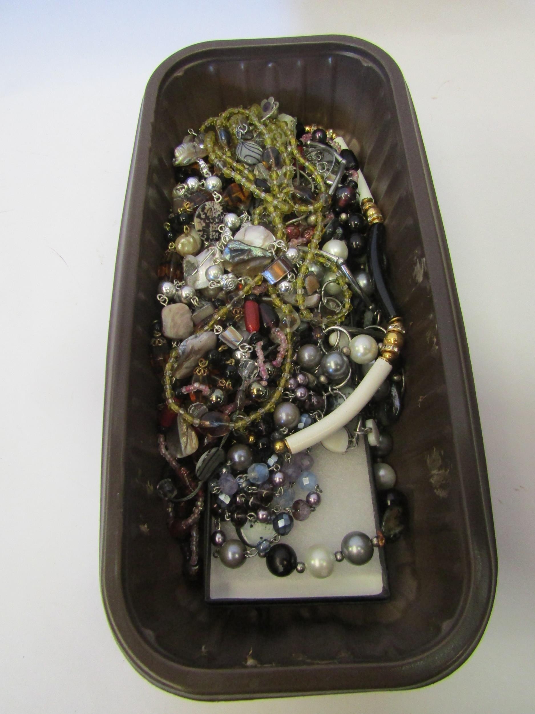 A box of miscellaneous bijouterie necklaces, simulated pearl and glass examples