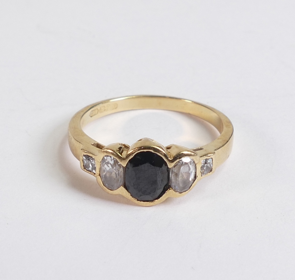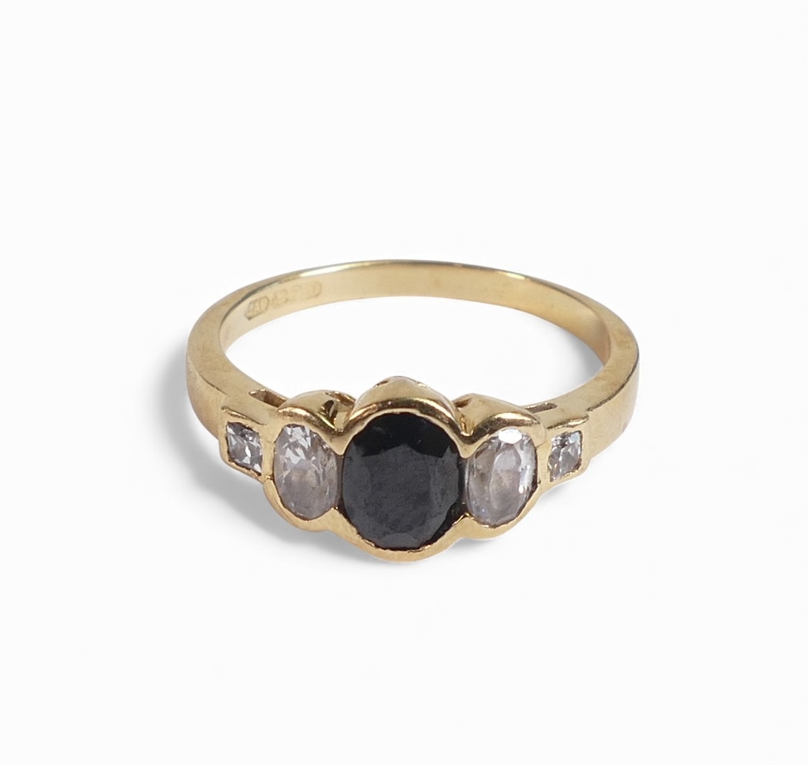 18ct gold sapphire and diamond ring, size O, 3.6g.
