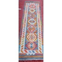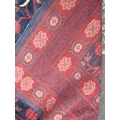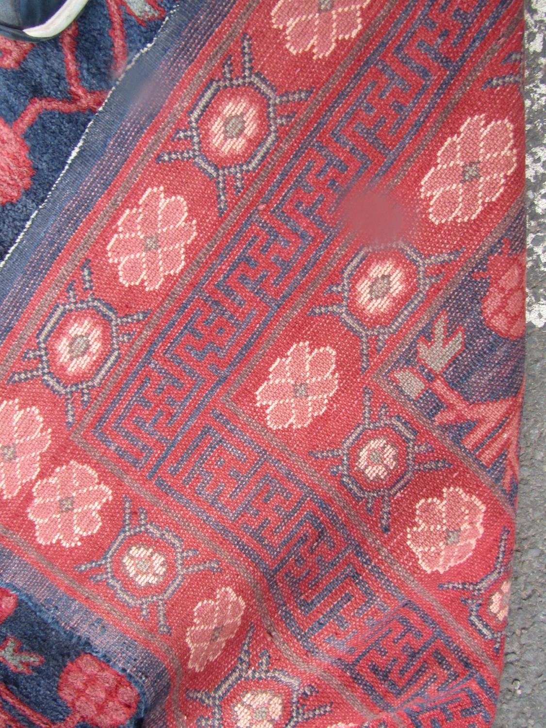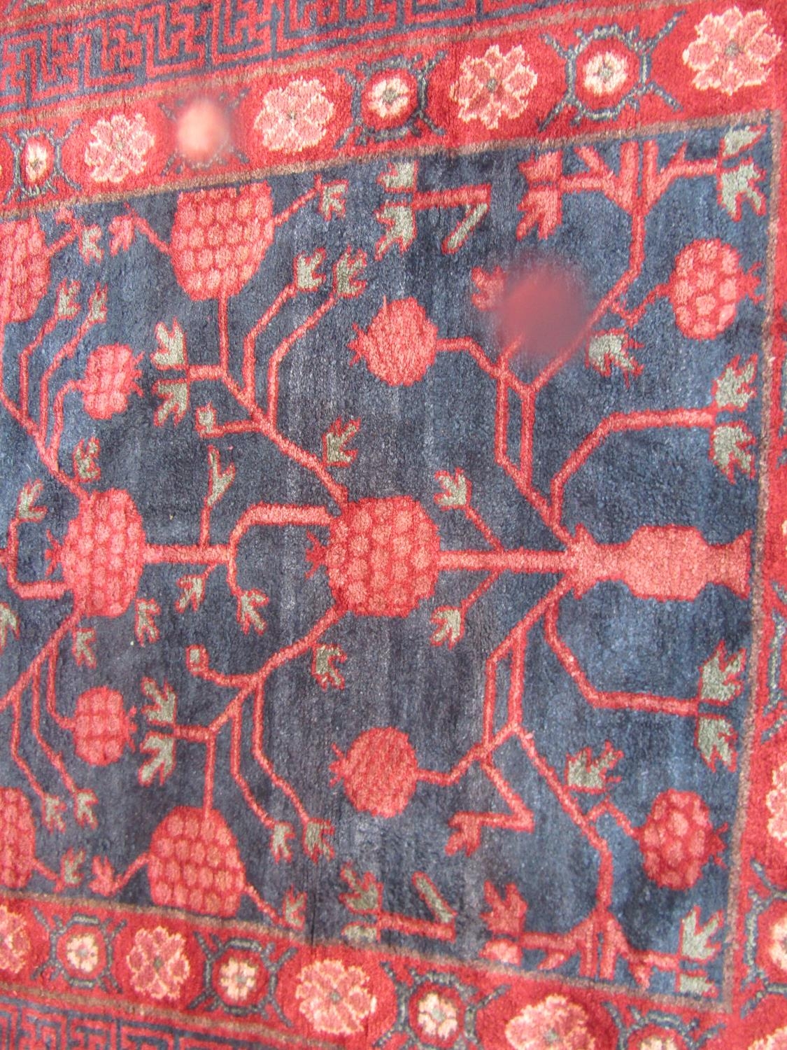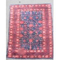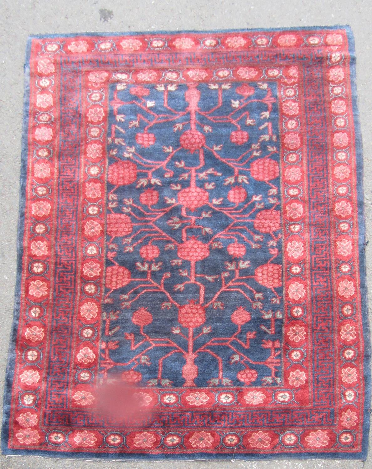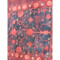 An East Turkoman silk rug with a large floral pattern on a blue ground, 193cm x 136cm approx.