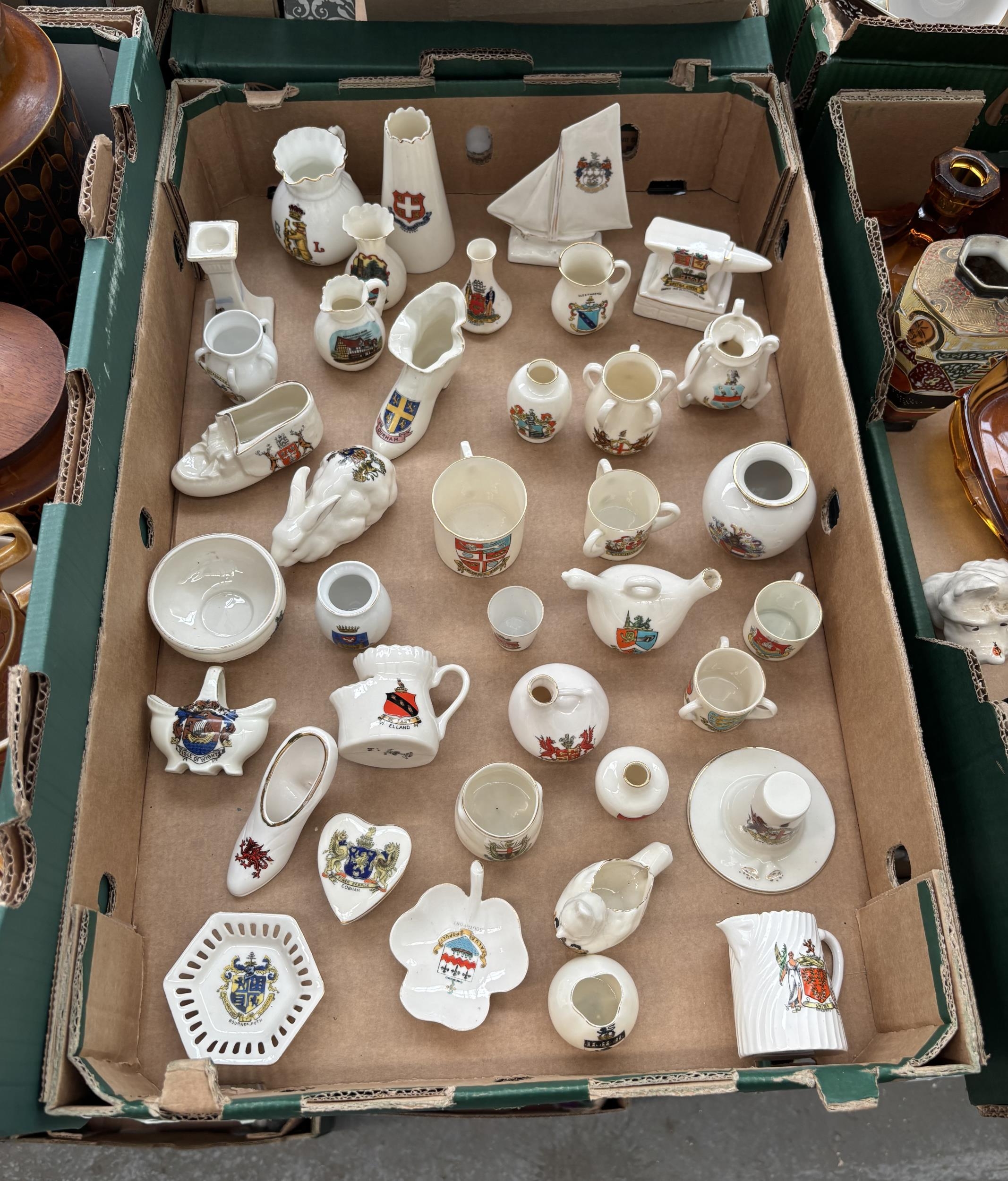 Box containing vintage crested ware
