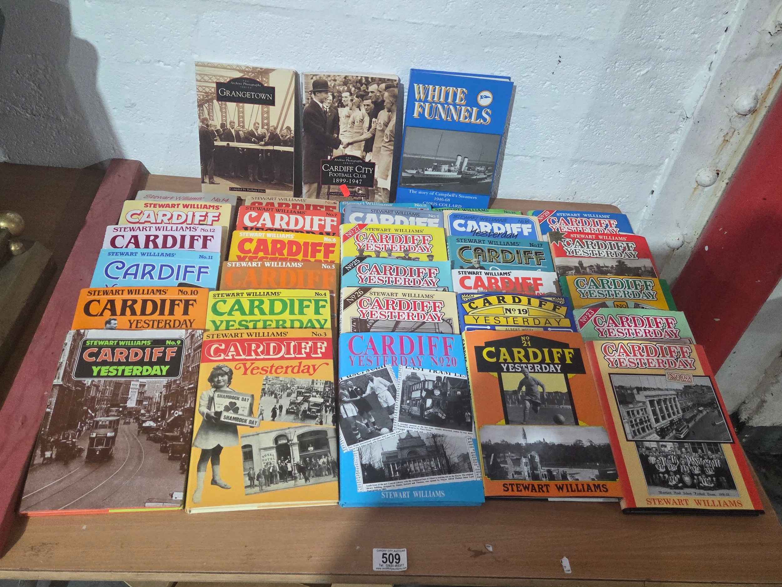 Thirty Cardiff Yesterday books with two other Cardiff related books and the story of Campbells steamers
