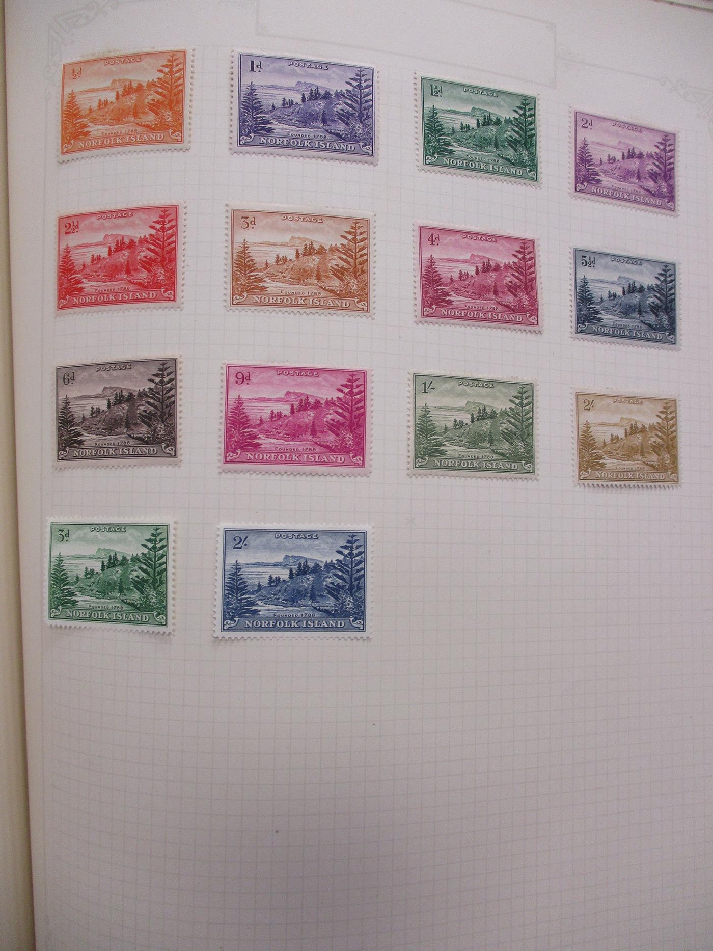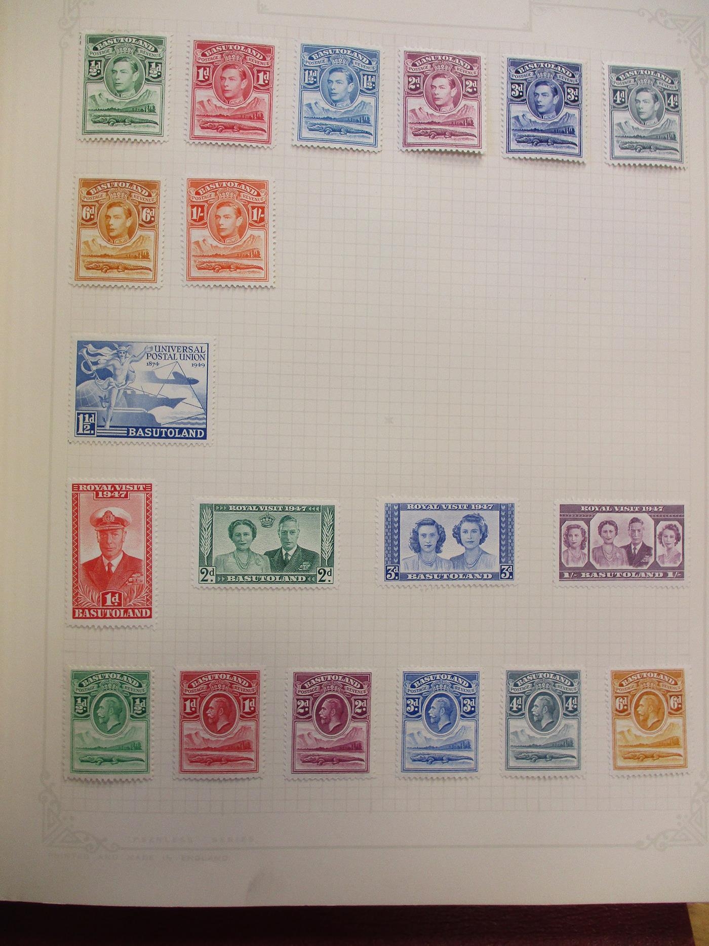 BC A to Z KGV-KGVI M coln in ‘The Stamp Album’ incl 1938-51 set to 1s, Gambia 1935 SJ, Mauritius 1938-49 set to 1r, Tristan 1952 ovpt set to 1s, Bahamas 1935 SJ, 1942 Landfall set to 1s, Bermuda 1935 SJ set, B. Honduras 1935 SJ set, Falkland Is 1935 SJ set, 1938-50 set to 1s & 1952 set to 1s, Virgin Is 1938-47 set to 1s, Fiji 1935 SJ, NZ and Norfolk Is 1947-58 set to 2s etc. (V)