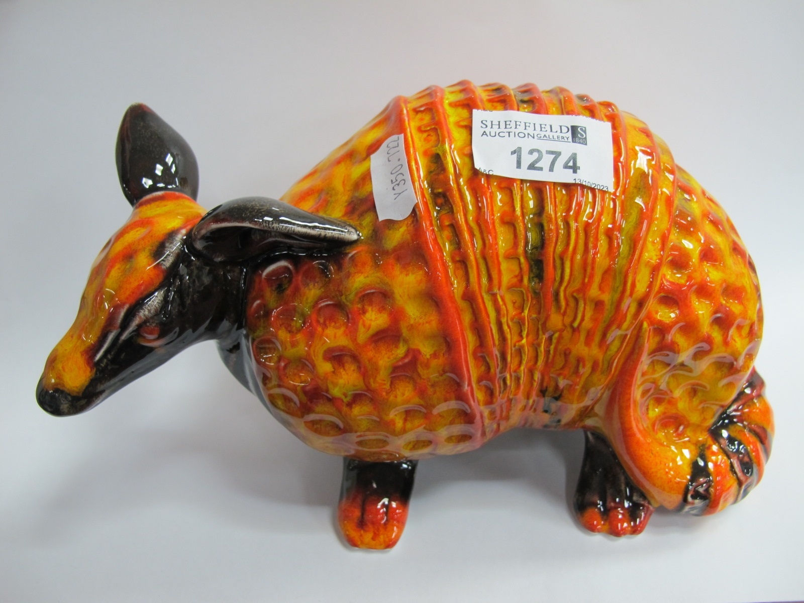 Anita Harris Figure of an Armadillo, in vibrant colours, gold signed, 13cm high, 24cm long.