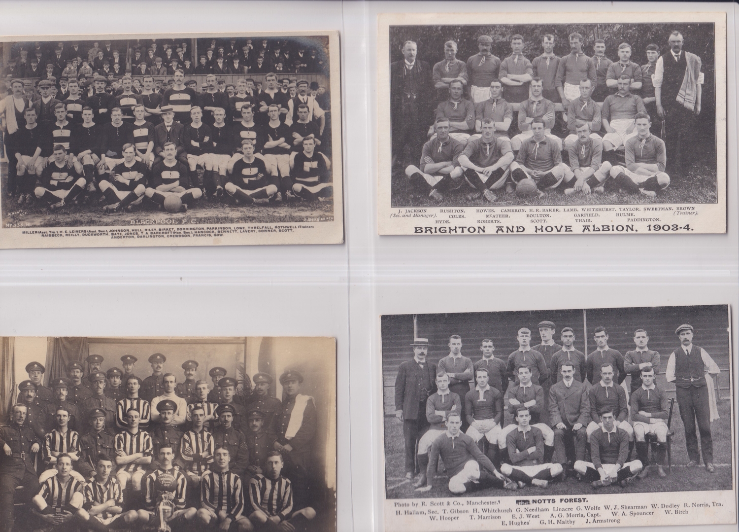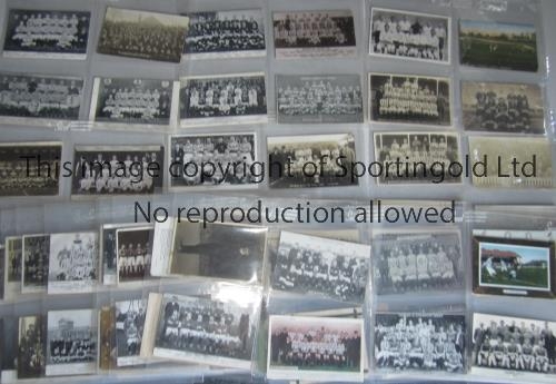 FOOTBALL POSTCARDS Over 100 postcards from the early 1900's onwards with the vast majority Pre-1940. Includes Brighton, Bolton, Barnsley, Bradford Park Avenue, Bradford City, Blackburn, Blackpool, Everton, Fulham, Manchester United, Nottingham Forest, Notts. County, QPR, Oldham, Preston, Swindon, Stockport, Wolves, Morton, Shelbourne, Bury, Burnley, Portsmouth, Aston Villa, Sheff. Weds., Darlington, Newcastle, Manchester City, Bristol Rovers and West Ham United. Generally good