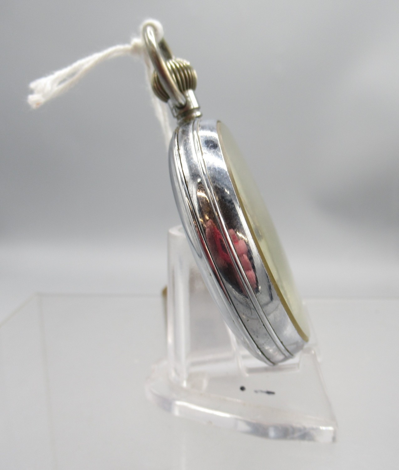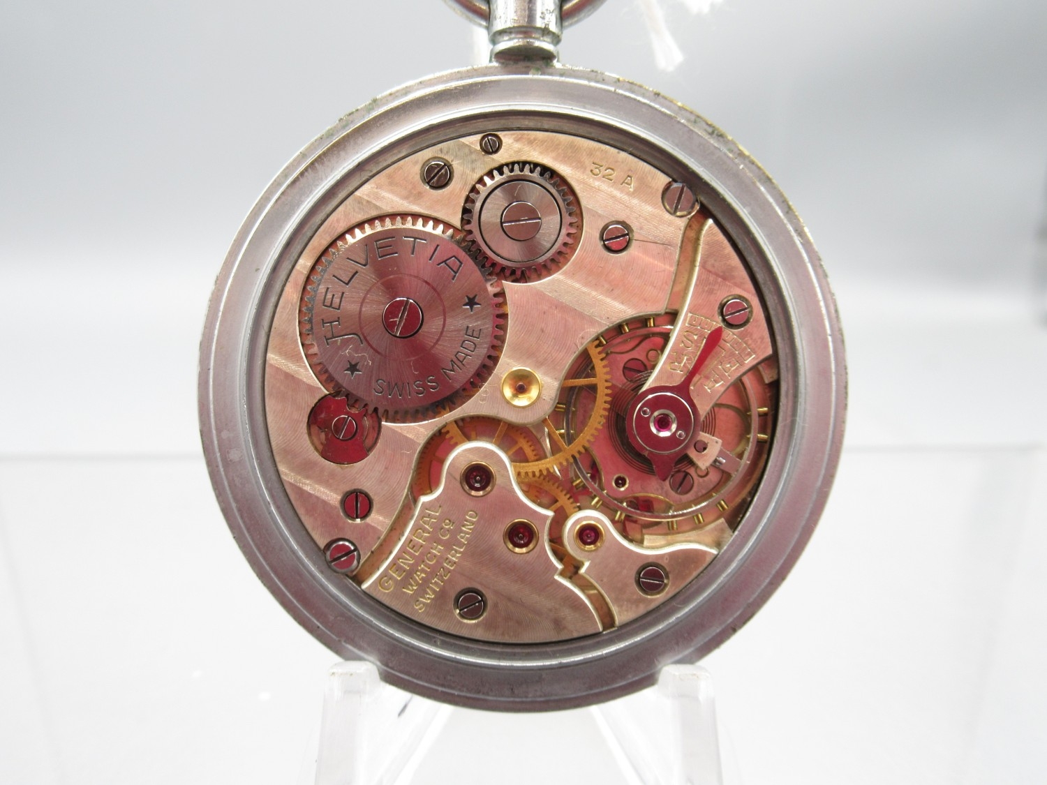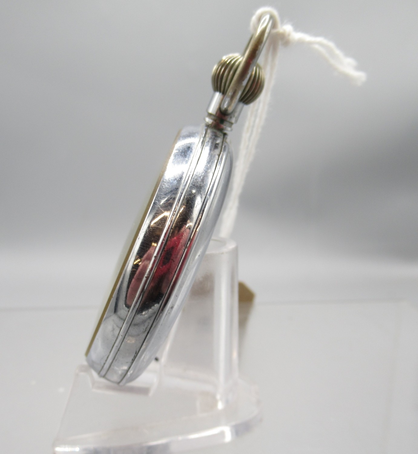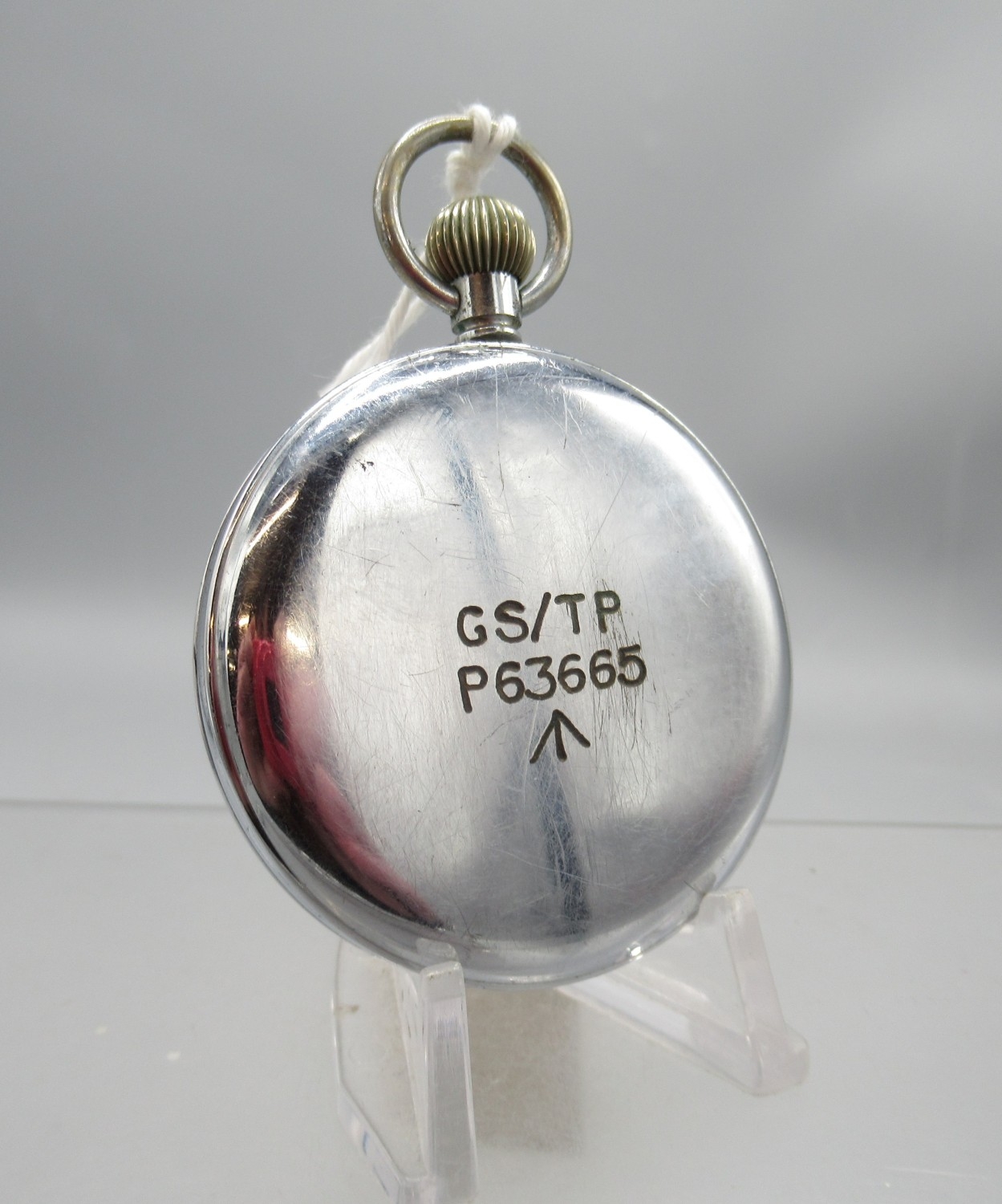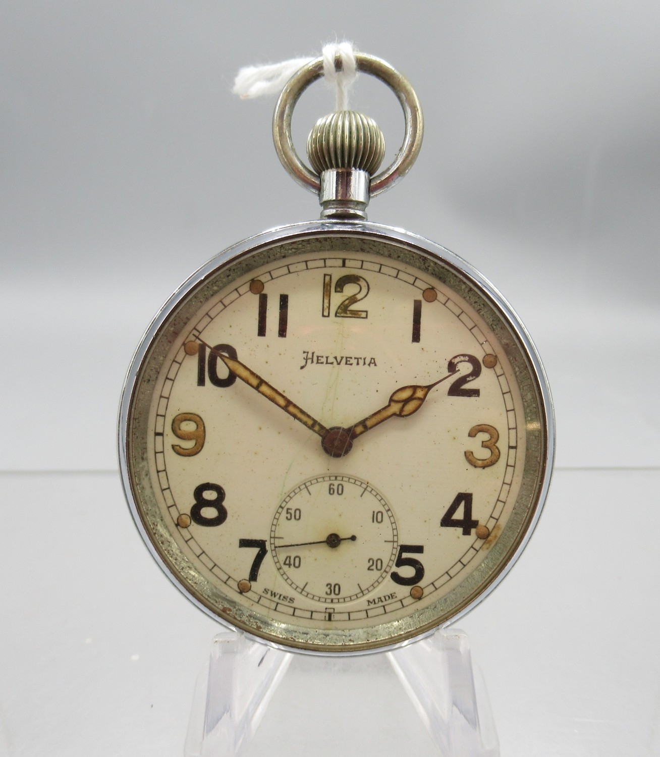 Helvetia, WWII British Military Issue G.S.T.P. chrome keyless pocket watch, signed white Arabic dial with subsidiary seconds, snap on case back engraved with Broad Arrow, GS/TP P63665, inner no. 6010, Helvetia General Watch Co. 32A calibre 15 jewel movement, D52.3mm