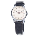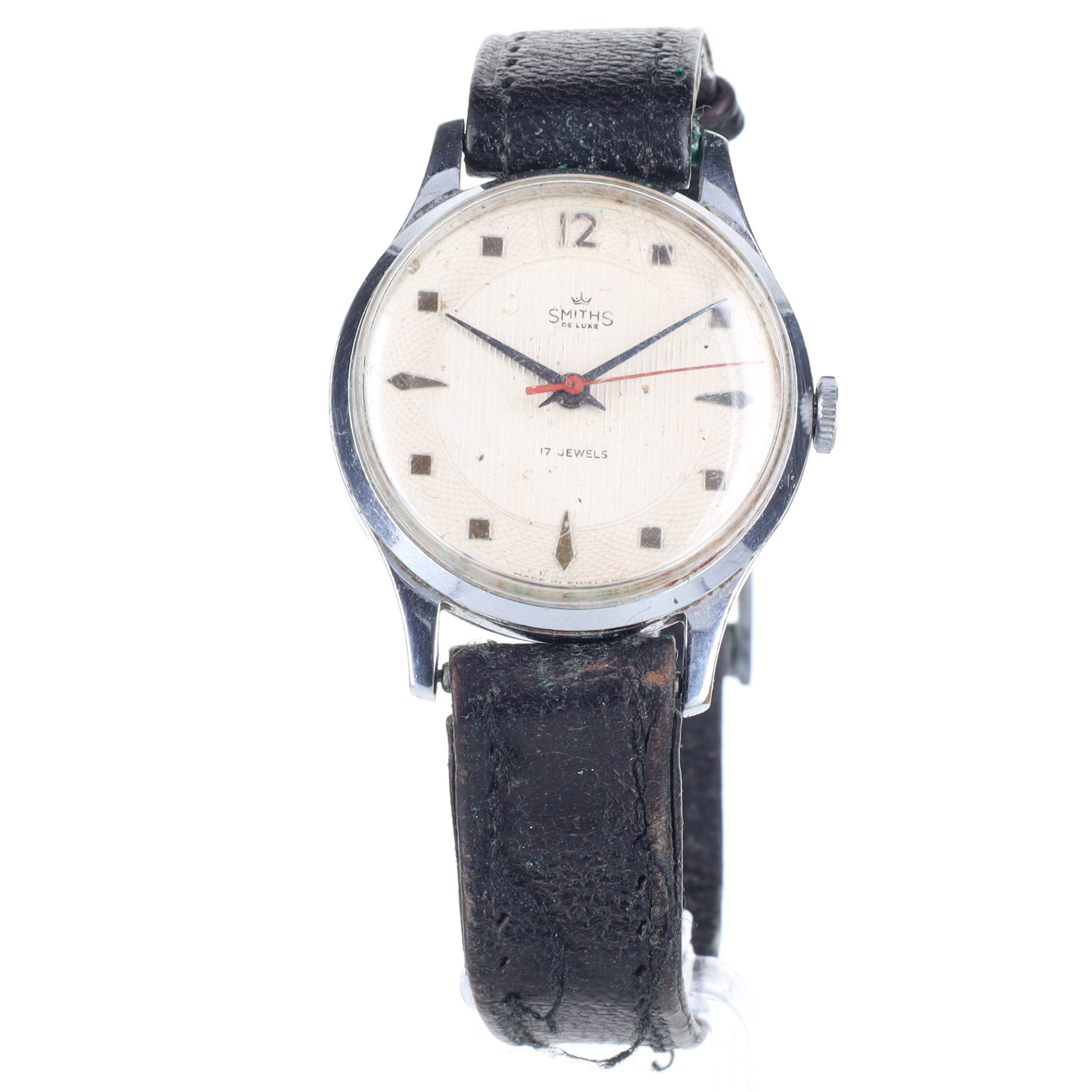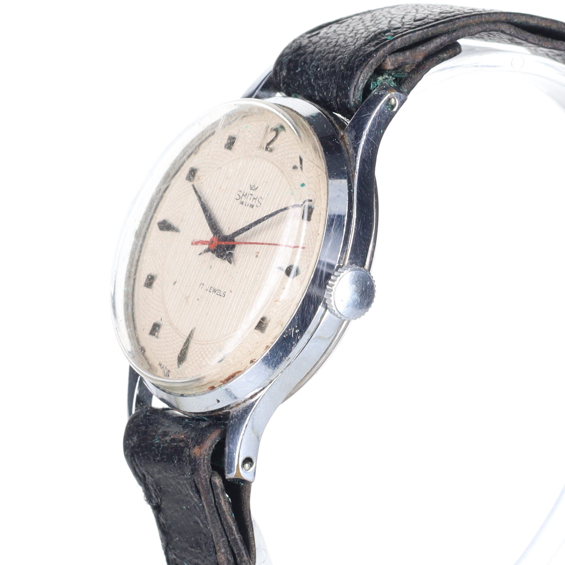 Smiths - 17 Jewel Smiths Calibre 27.CS Hand-wind movement. Stainless Steel case and leather bracelet. Acrylic crystal has some scratches present. Watch is in full working order, offered without original box or papers.