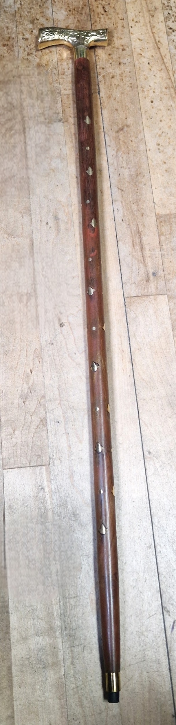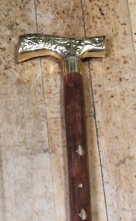 WOODEN BRASS T-BAR HANDLED WALKING STICK
