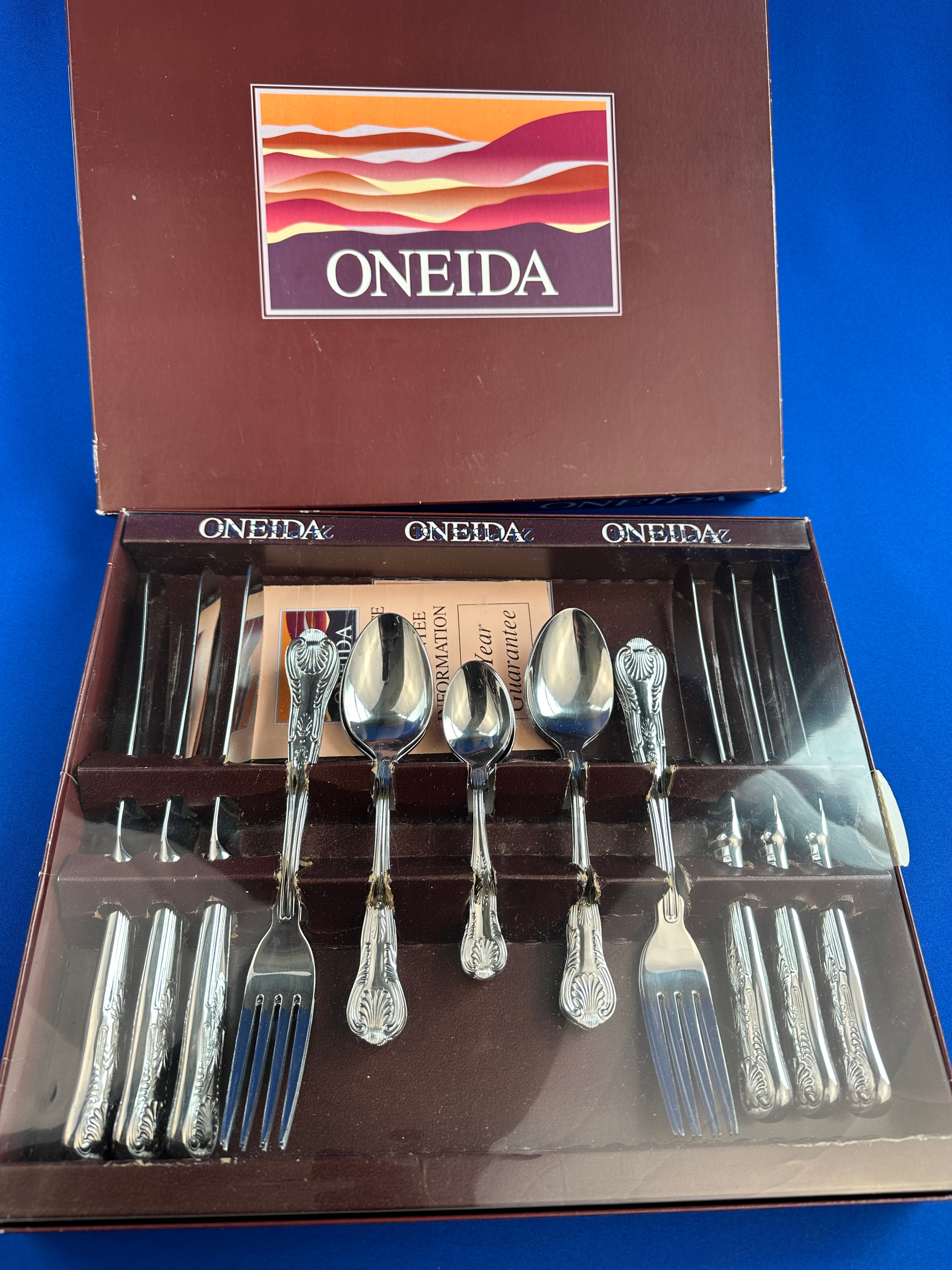 Oneida Kings Pattern 24 Piece Boxed Set as New 2/2