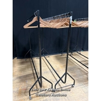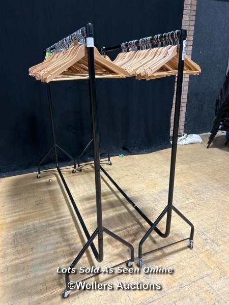 Two clothes rails and hangers, 157cm (h) x 188cm (l) / Buyer will be responsible for removal, located in the large hall / Lot Location: The Tropicana, Marine Parade, Weston-Super-Mare, North Somerset, BS23 1BE