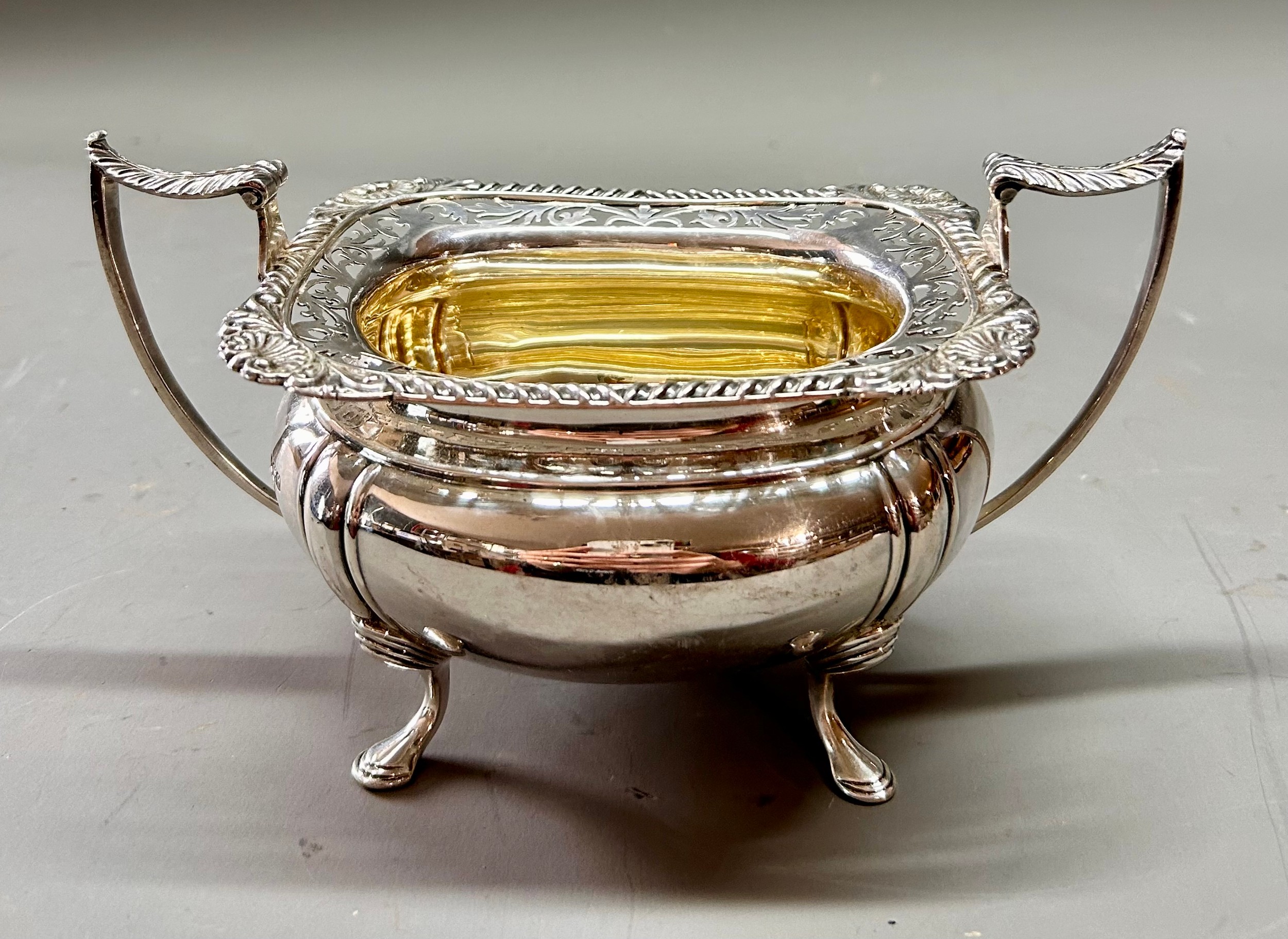 Silver Hallmarked Decorative Rimmed Double Handled Large Sugar Bowl. 26cmm x 16cm, 408.9Grams.