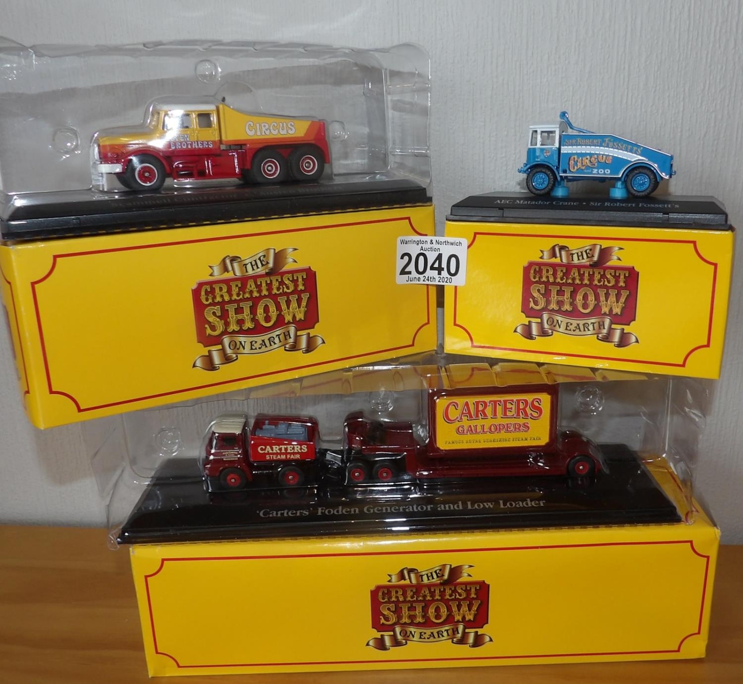 Atlas x 3 Greatest Show on Earth AEC Crane, Austin Bros Scammell, Carters Foden. P&P Group 2 (£18+VAT for the first lot and £2+VAT for subsequent lots)