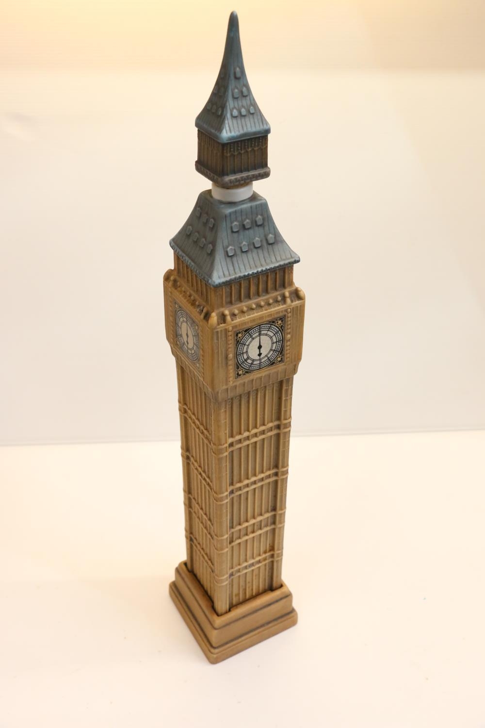 Ceramic musical decanter in the form of Big Ben, approximately 50cm.