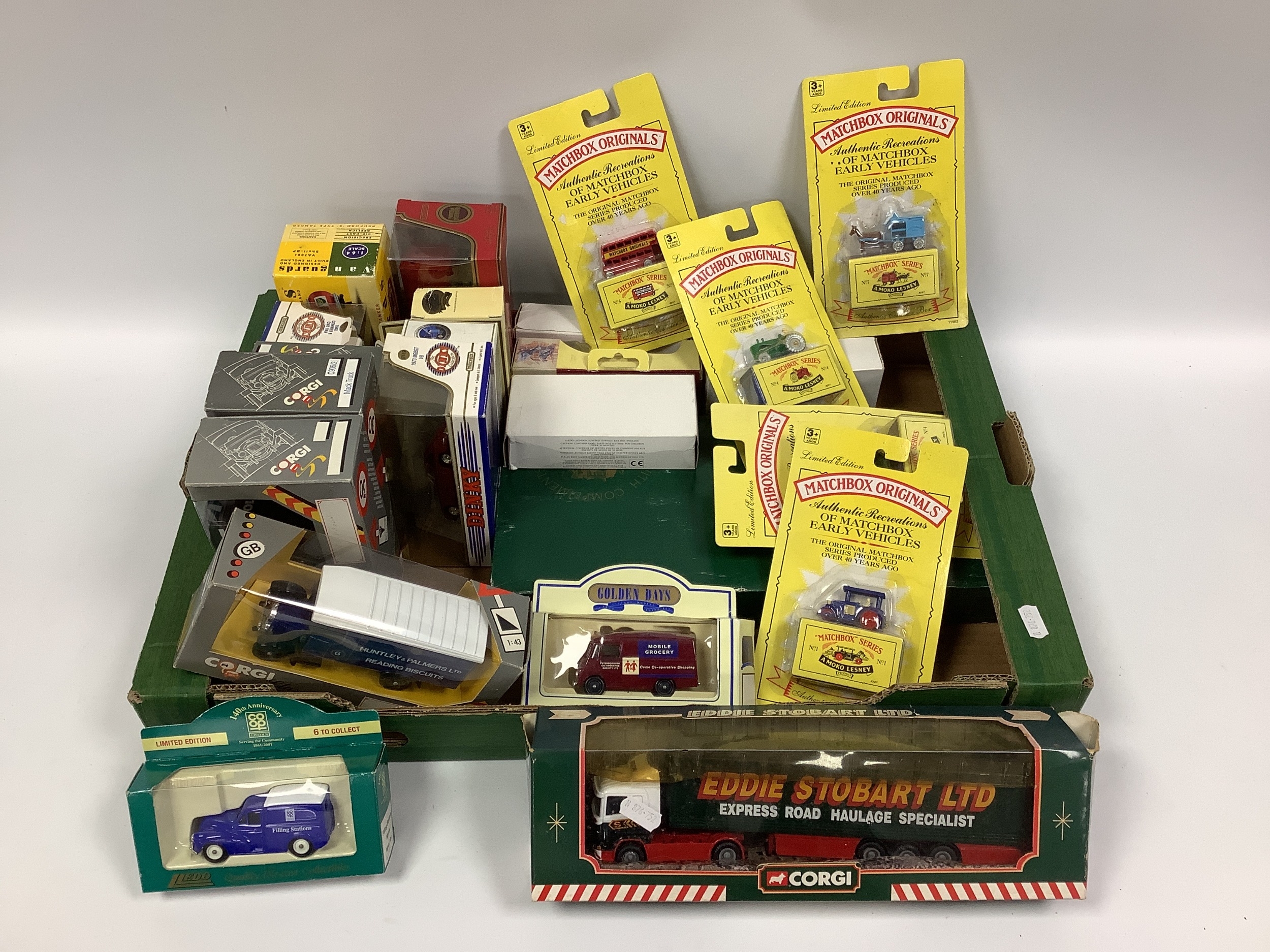 Twenty Nine Diecast Model Vehicles by Corgi, Matchbox, Lledo to include Corgi #59503 Eddie Stobart Scania Curtainside Trailer, boxed. [216483].