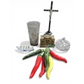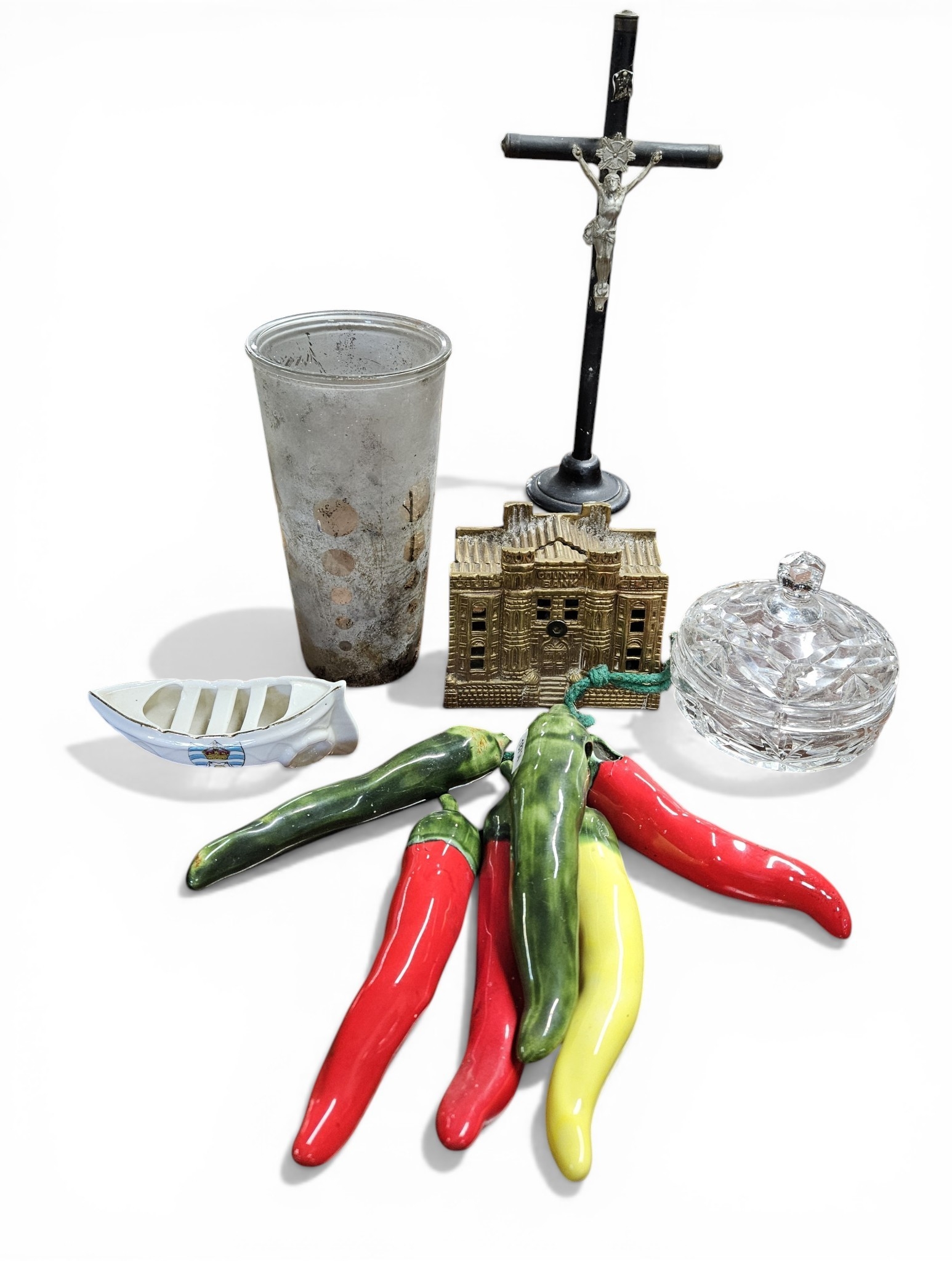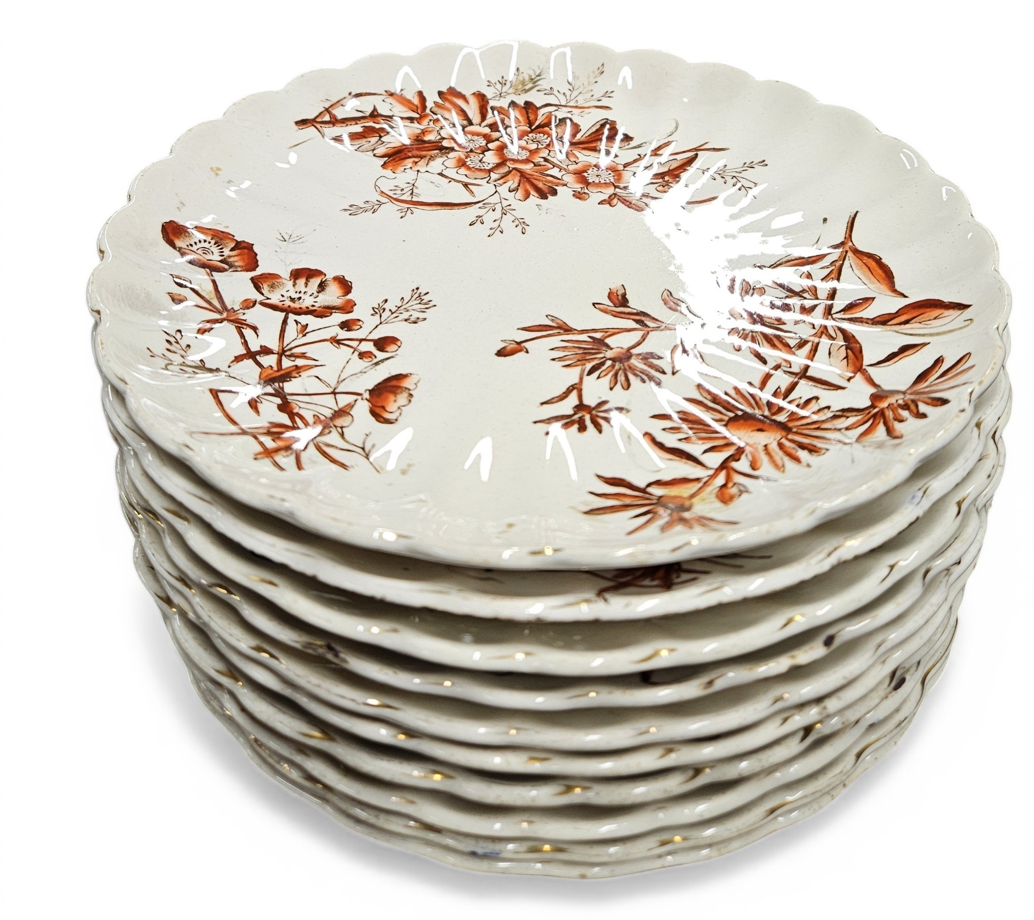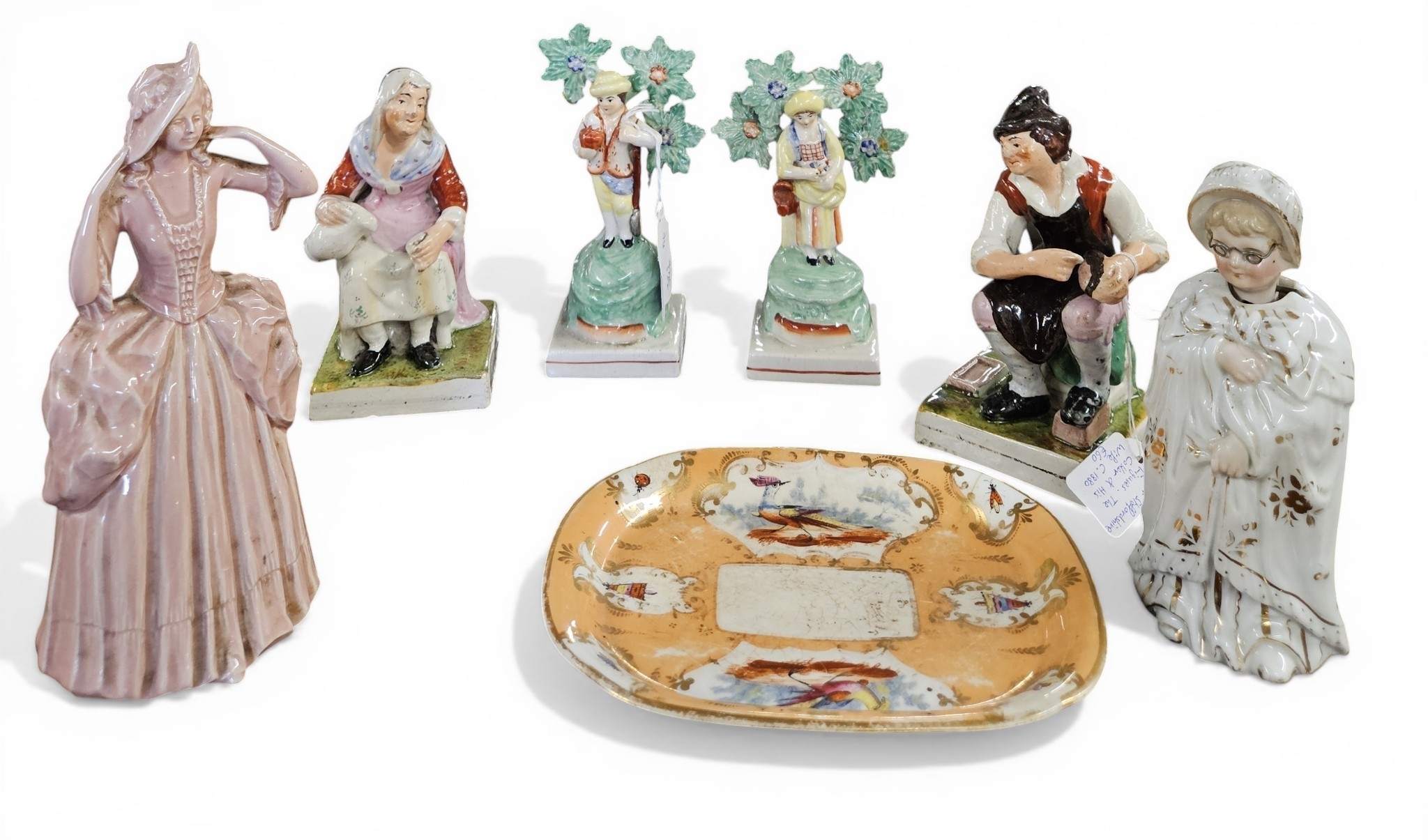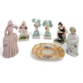A quantity of Dresden Dinnerwares along with a quantity of Staffordshire and other figures on the chest. TB 10 cm approx.