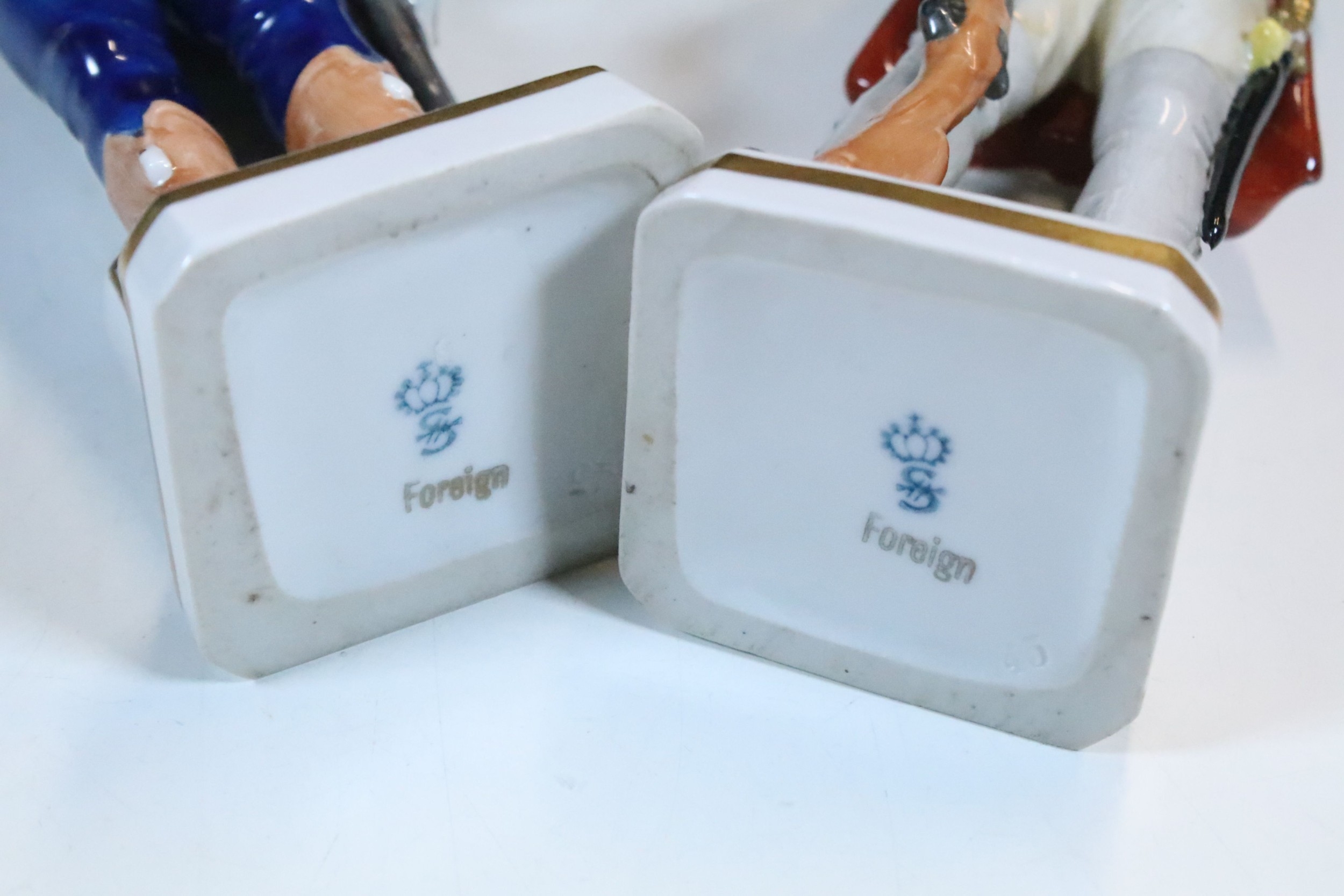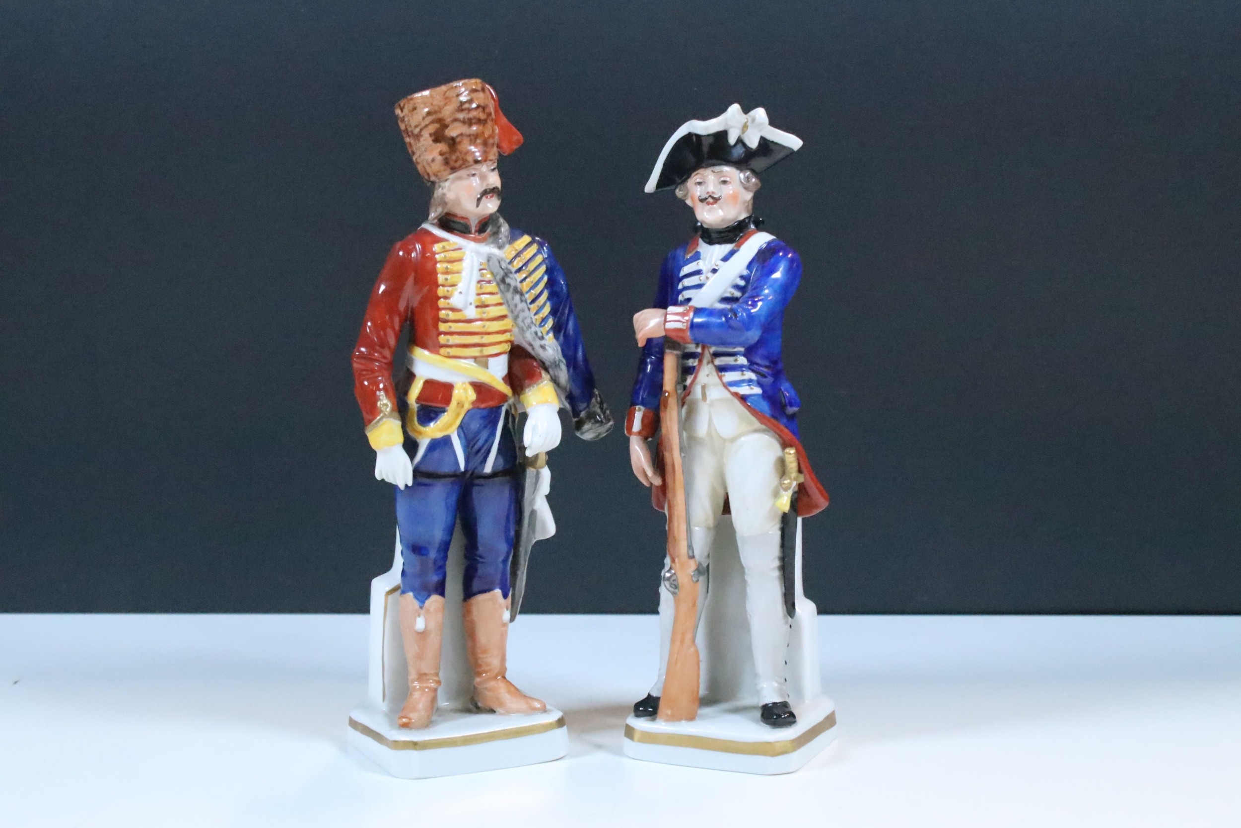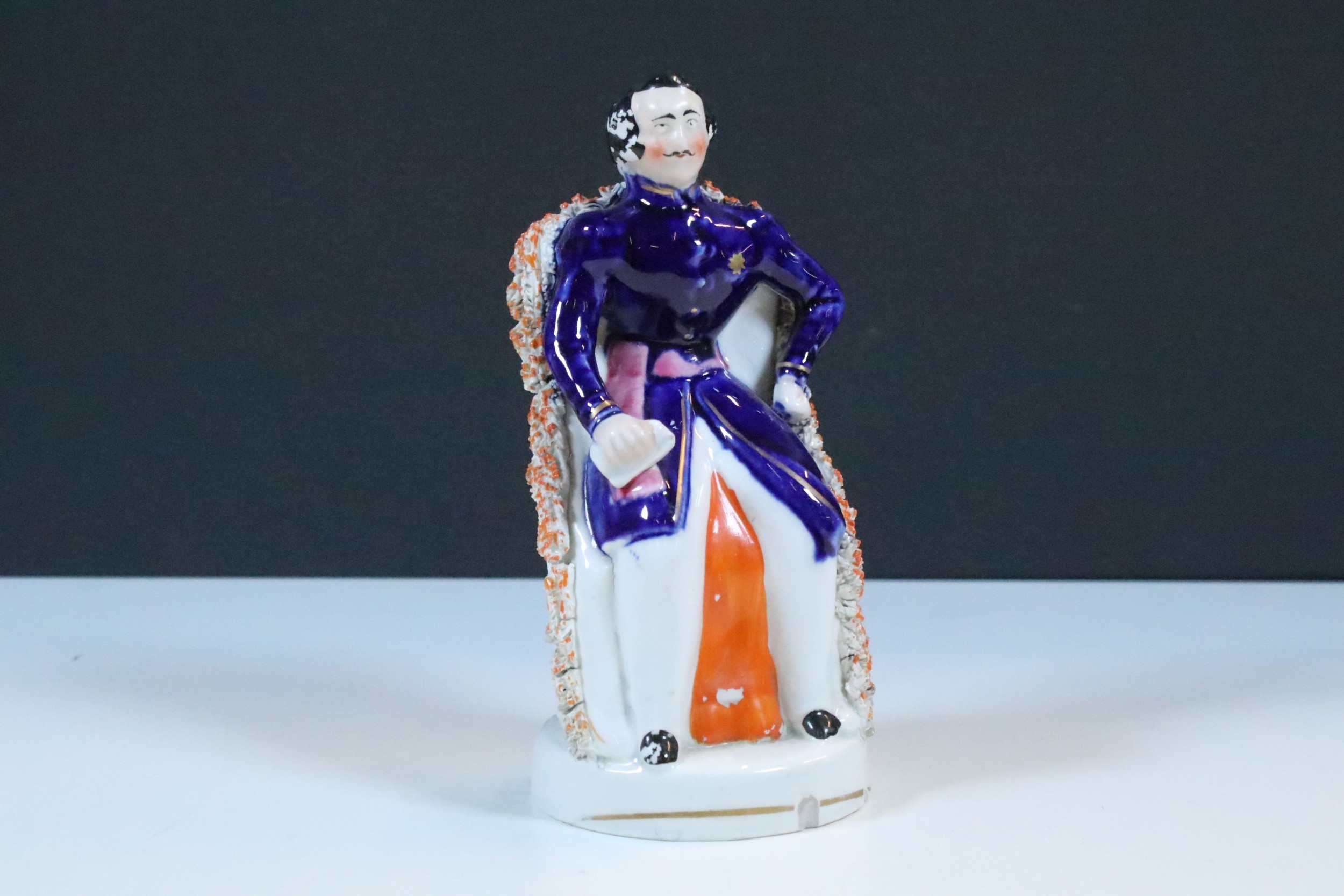 Group of 19th century and later figurines and models to include Toby cruet set, Sitzendorf Grenadier and Zieten Husar together with a Staffordshire flatback Prince Albert and a floral jug, etc (8)
