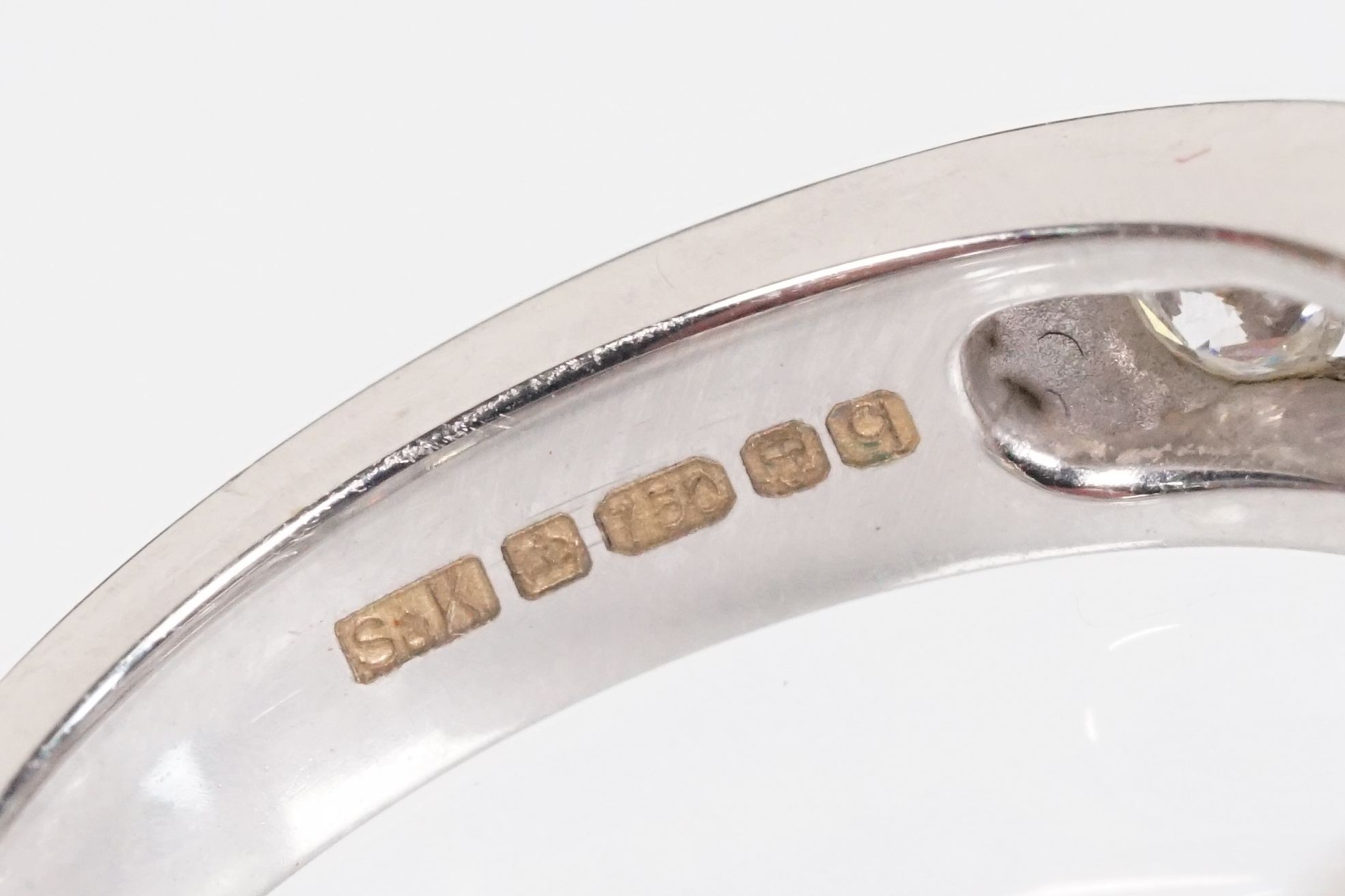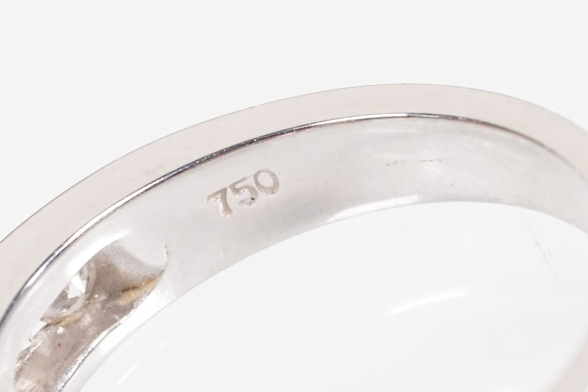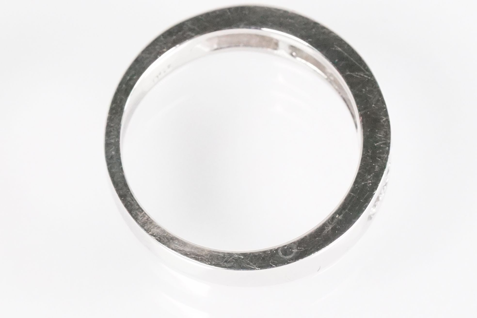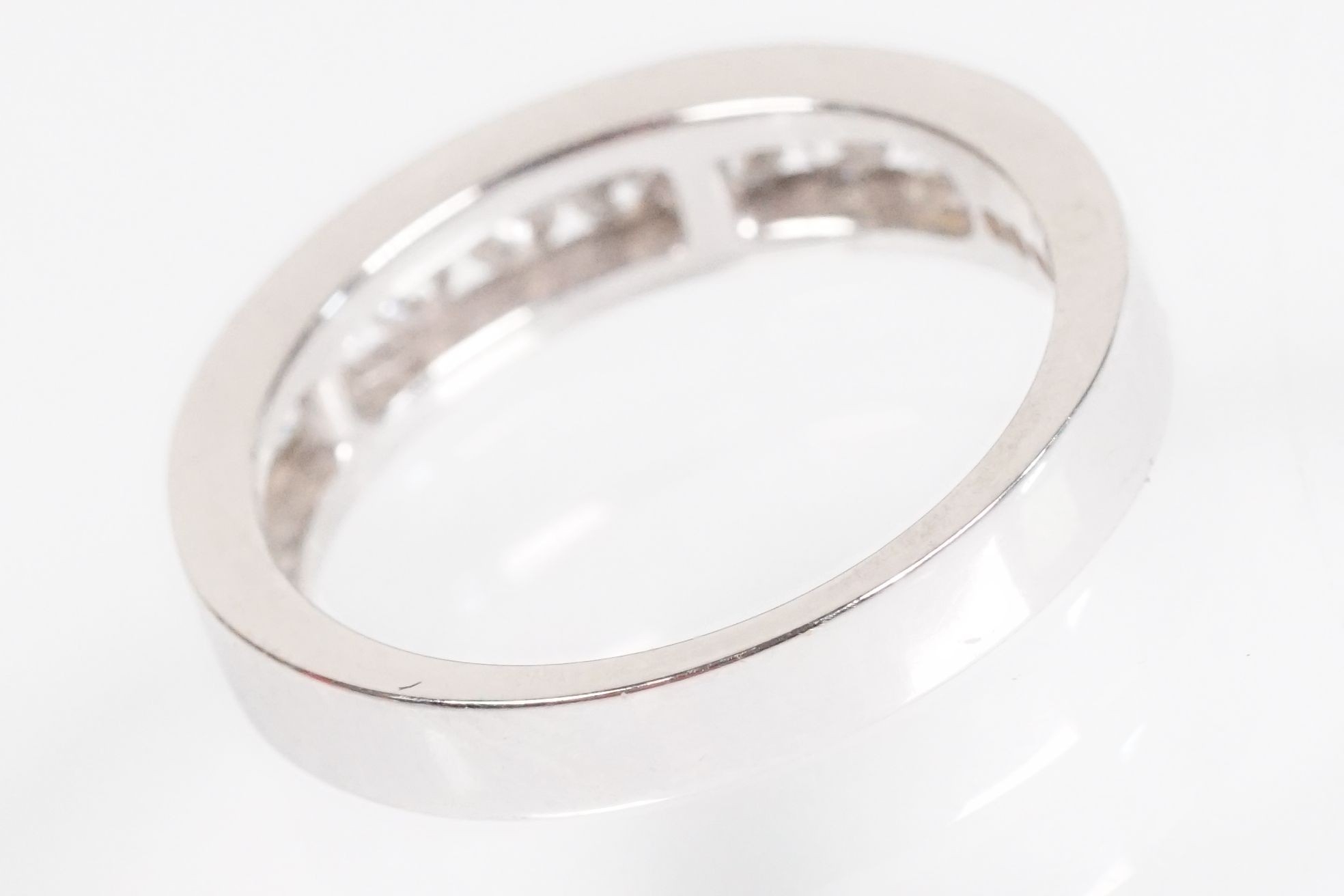 18ct white gold and diamond half eternity ring. The ring being set with ten round brilliant cut diamonds in channel settings. Hallmarked London 2015. Size K.
