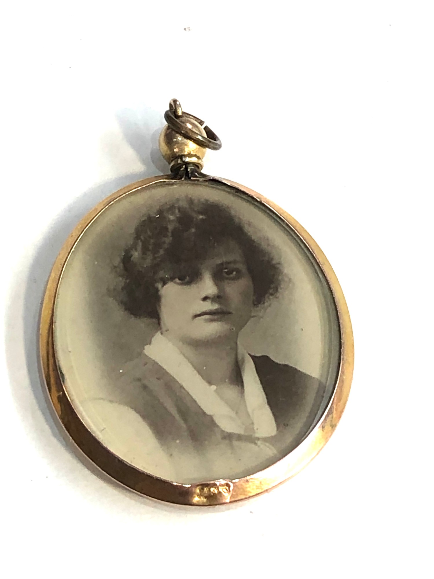 Antique 9ct gold framed picture locket measures approx 4.2cm drop by 2.9cm wide weight 6.5g