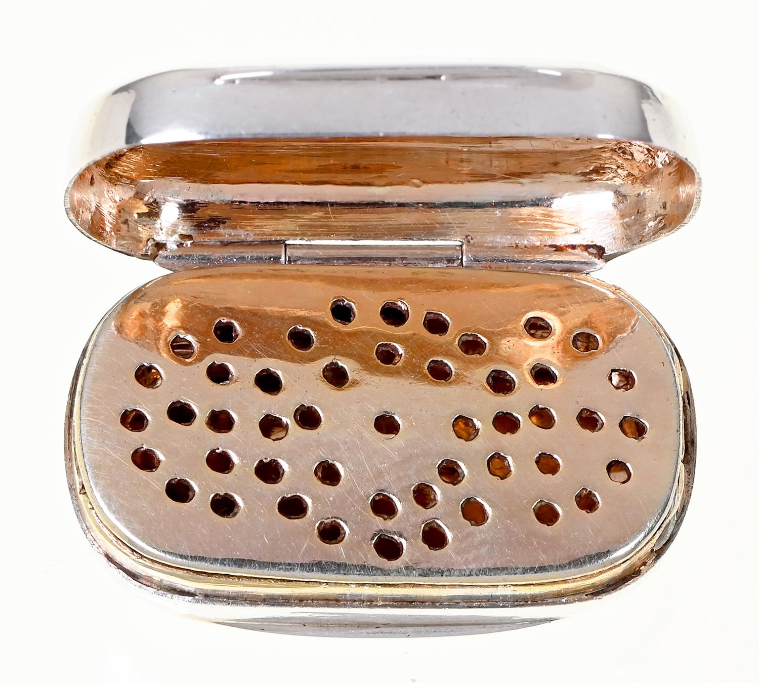 A George III silver vinaigrette, quite plain with two thumbpieces, plain 'pepper pot' grille, 29mm, by T Simpson & Son, Birmingham 1810, 5dwts