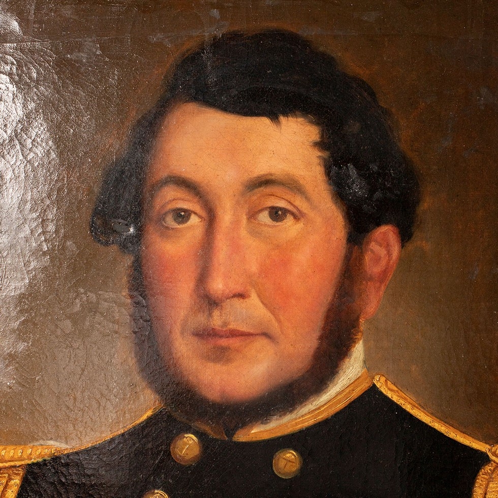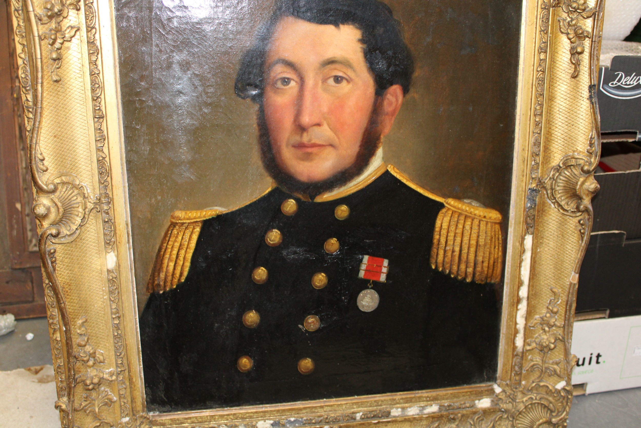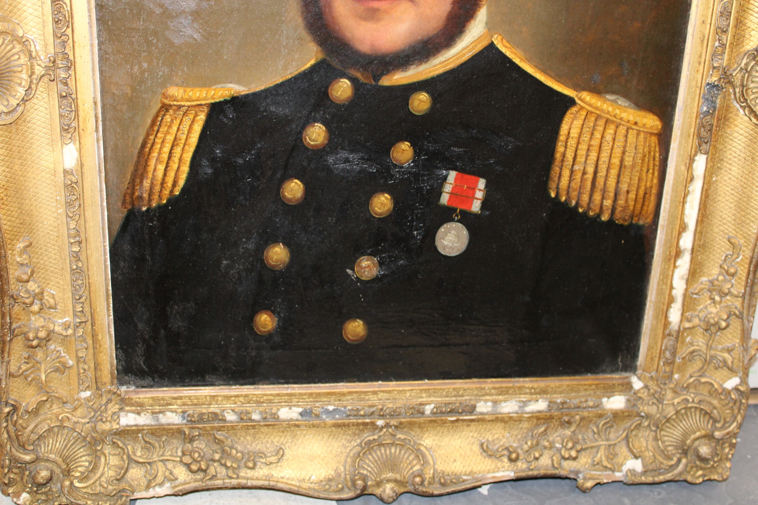 c19th oil painting portrait of Captain Charles Alexander Johnston Royal Navy HMS Agamemnon Trafalgar 1805 , San Domingo, Copenhagen, Rio Del Plata & Opium Wars, 59cm x 49cm, 81cm x 71cm including period gilt frame.