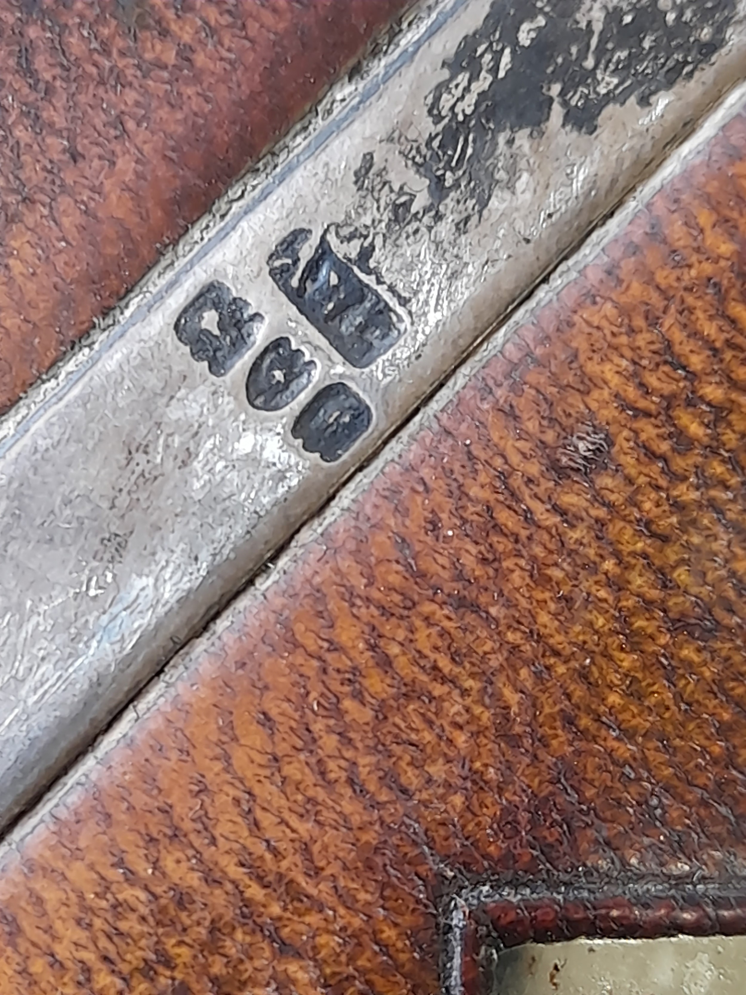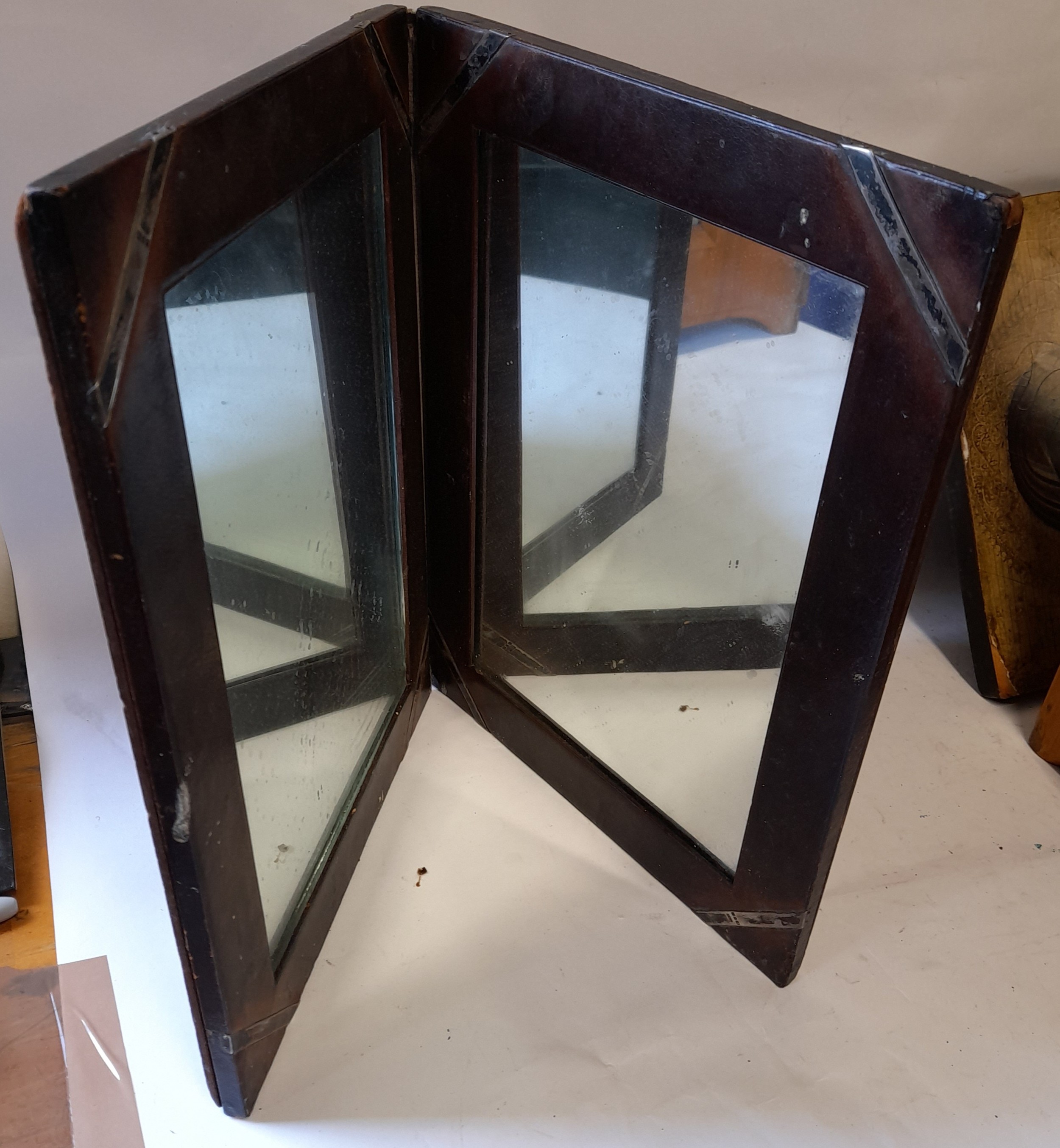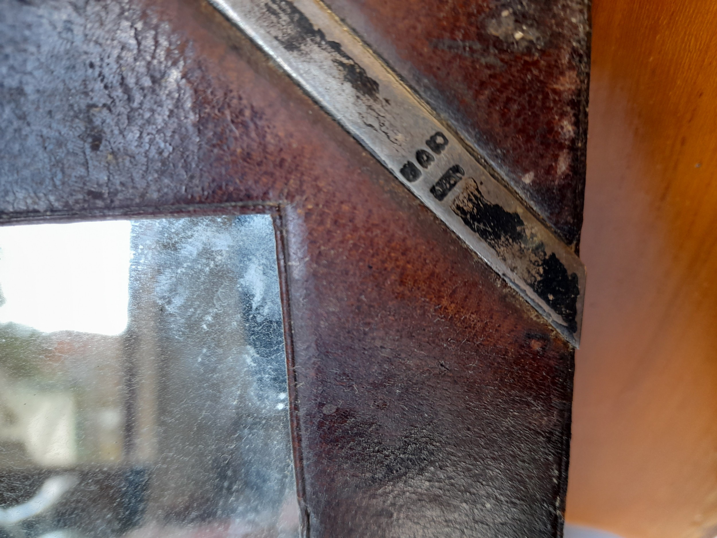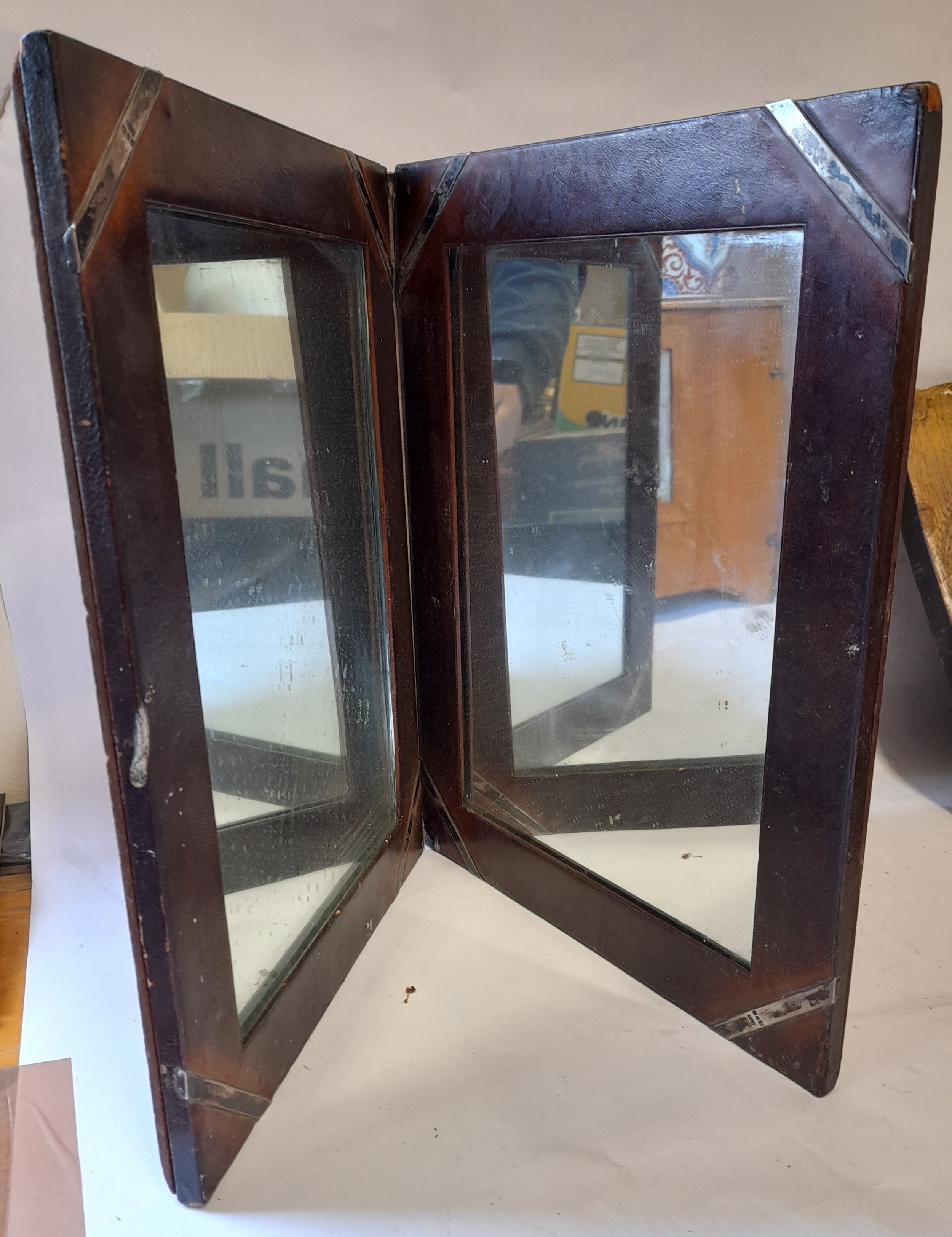 Vintage folding Mirror with Silver Detail to corners, some visible hallmarks. folded size 25cm x 34cm
