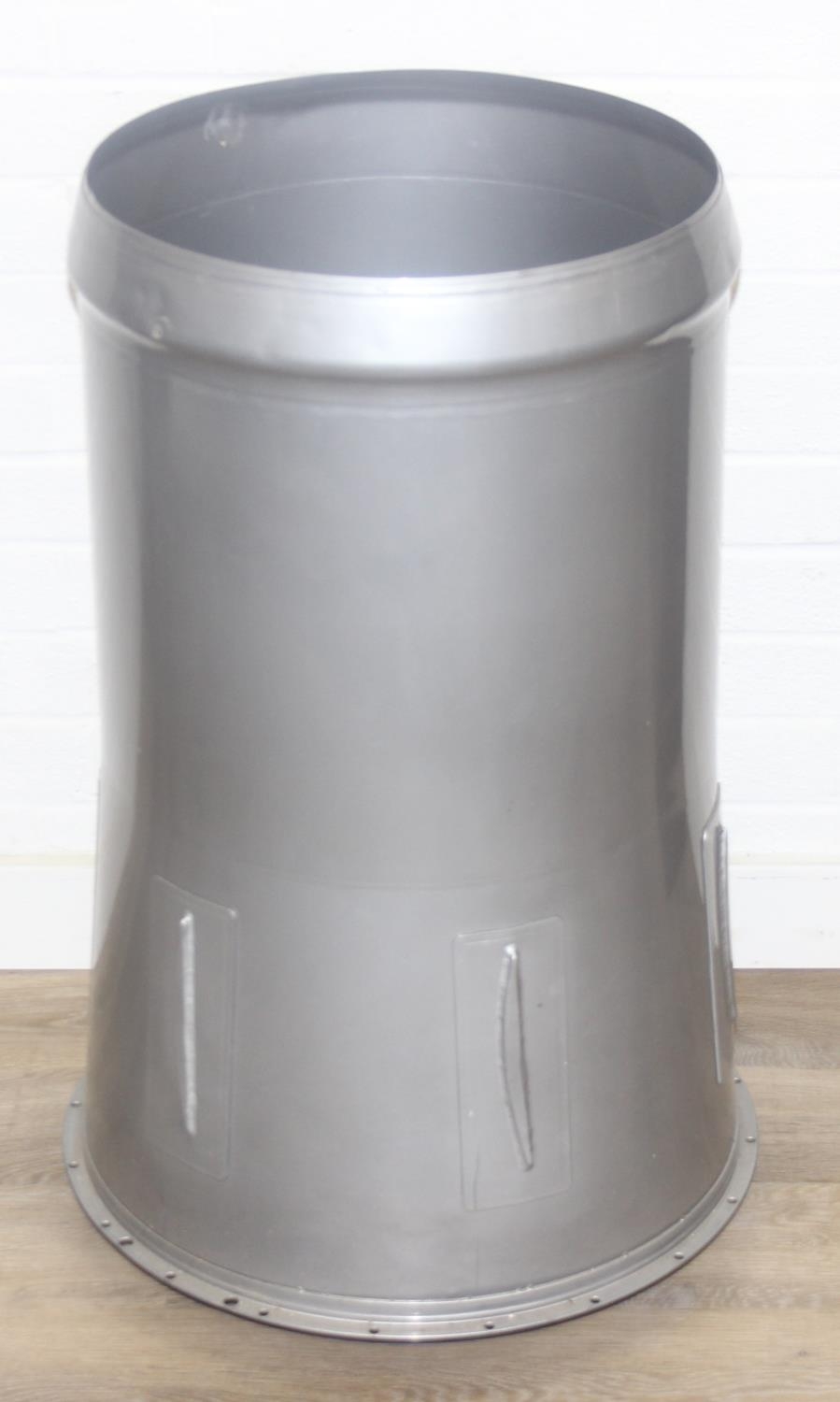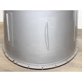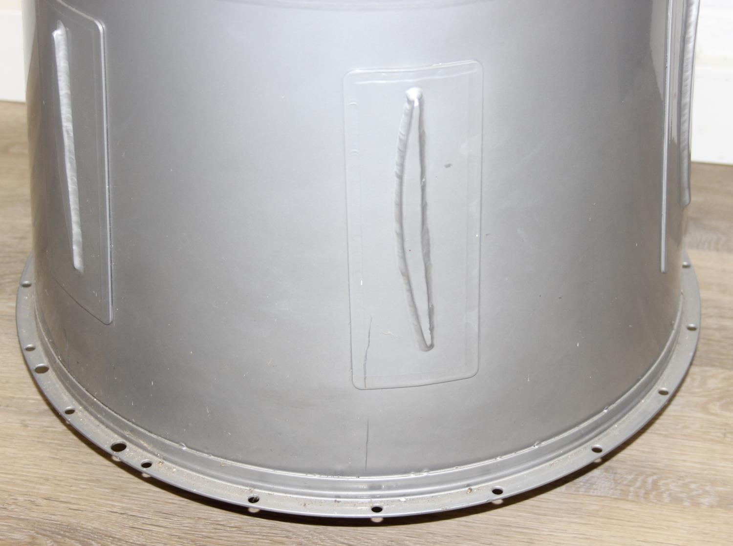A modern metal aeroplane engine cowling, silver painted metal finish, would make an ideal table base with glass top, 45cm diameter x 79cm
