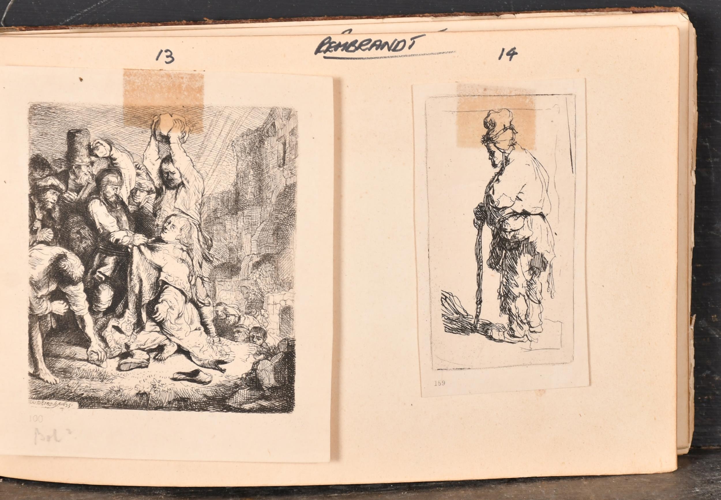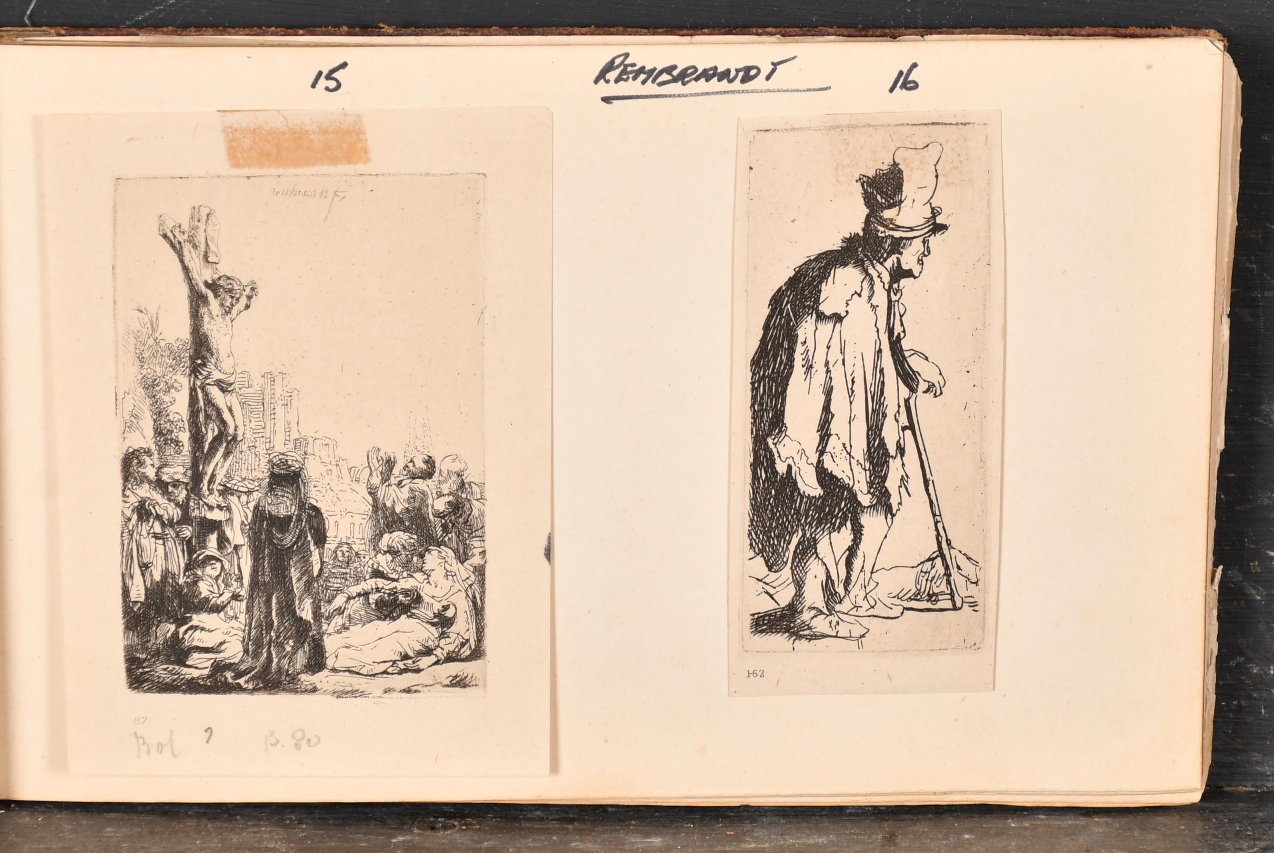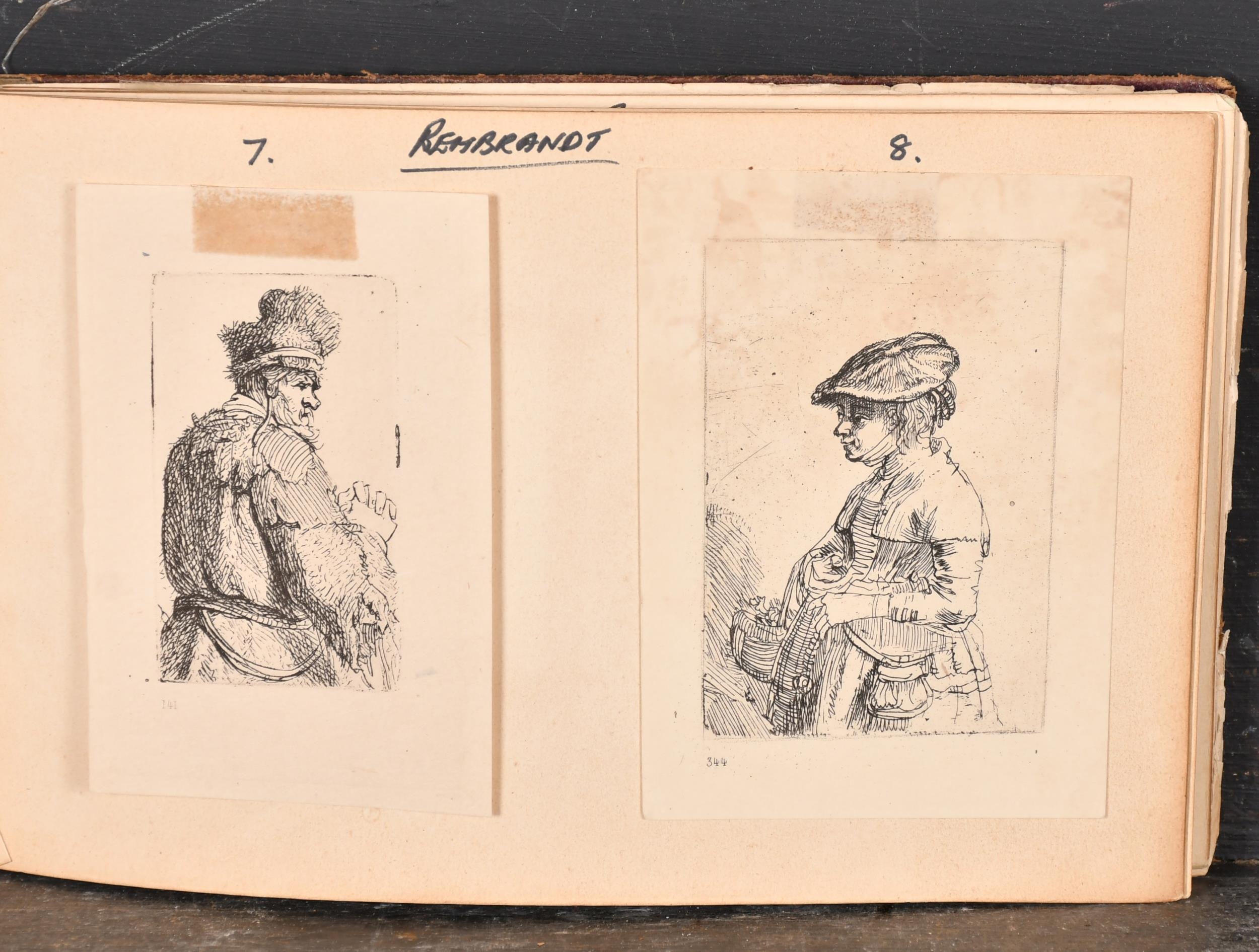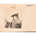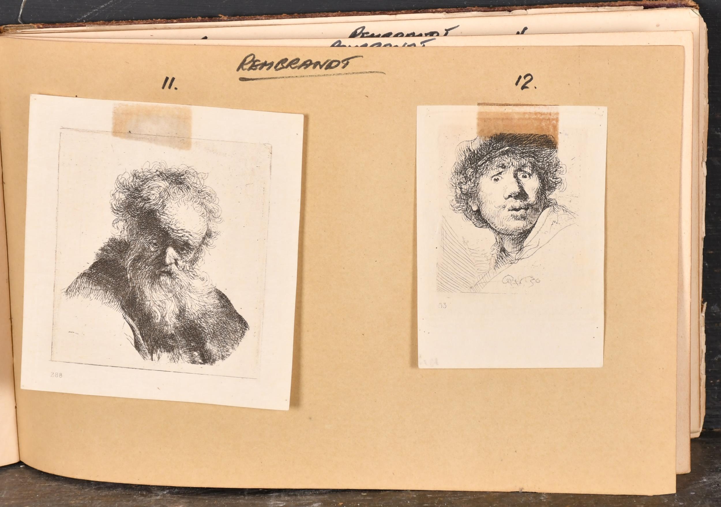 After Rembrandt van Rijn (1606-1669) Dutch. Head of a Man, Etching, Unframed 3.5" x 2.75" (8.9 x 7cm) together with sixteen others by the same hand contained in an album (17). Provenance: Sir Seymour Haden