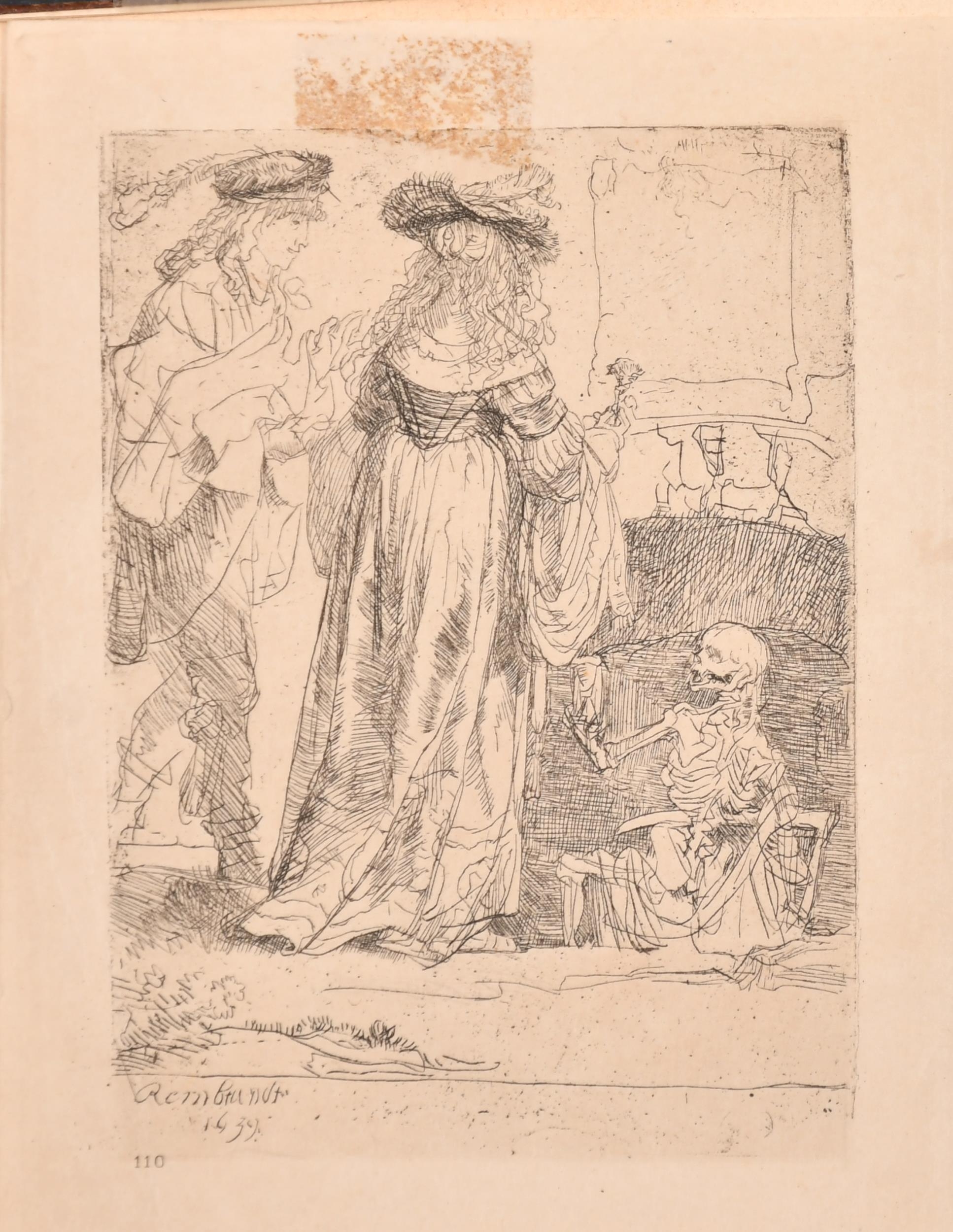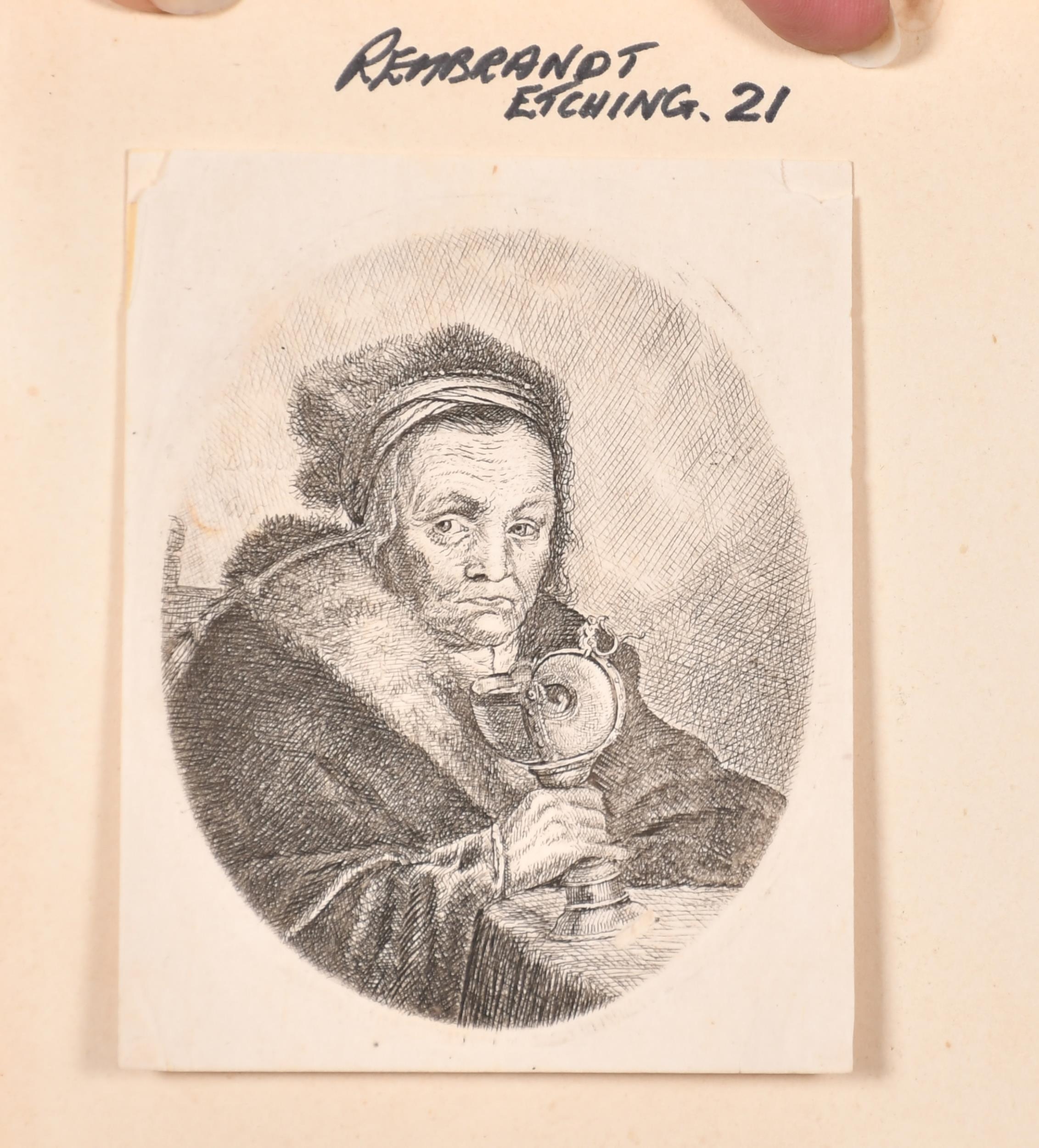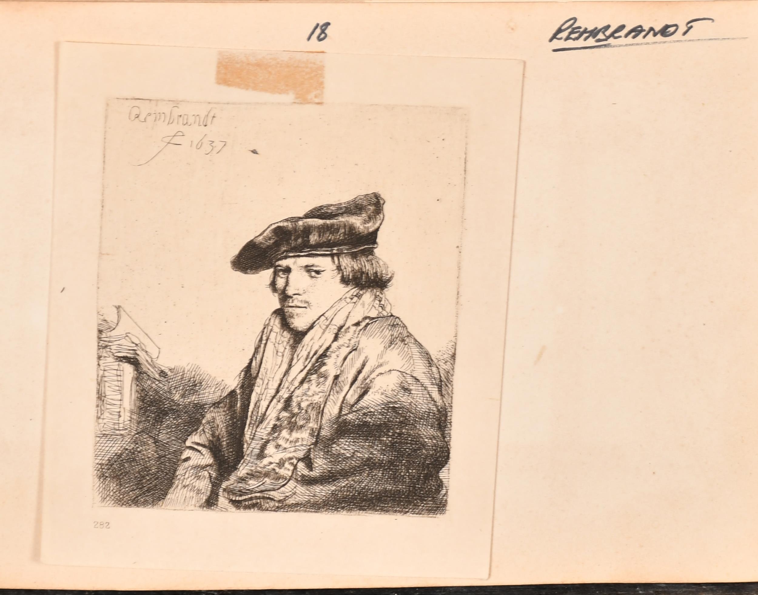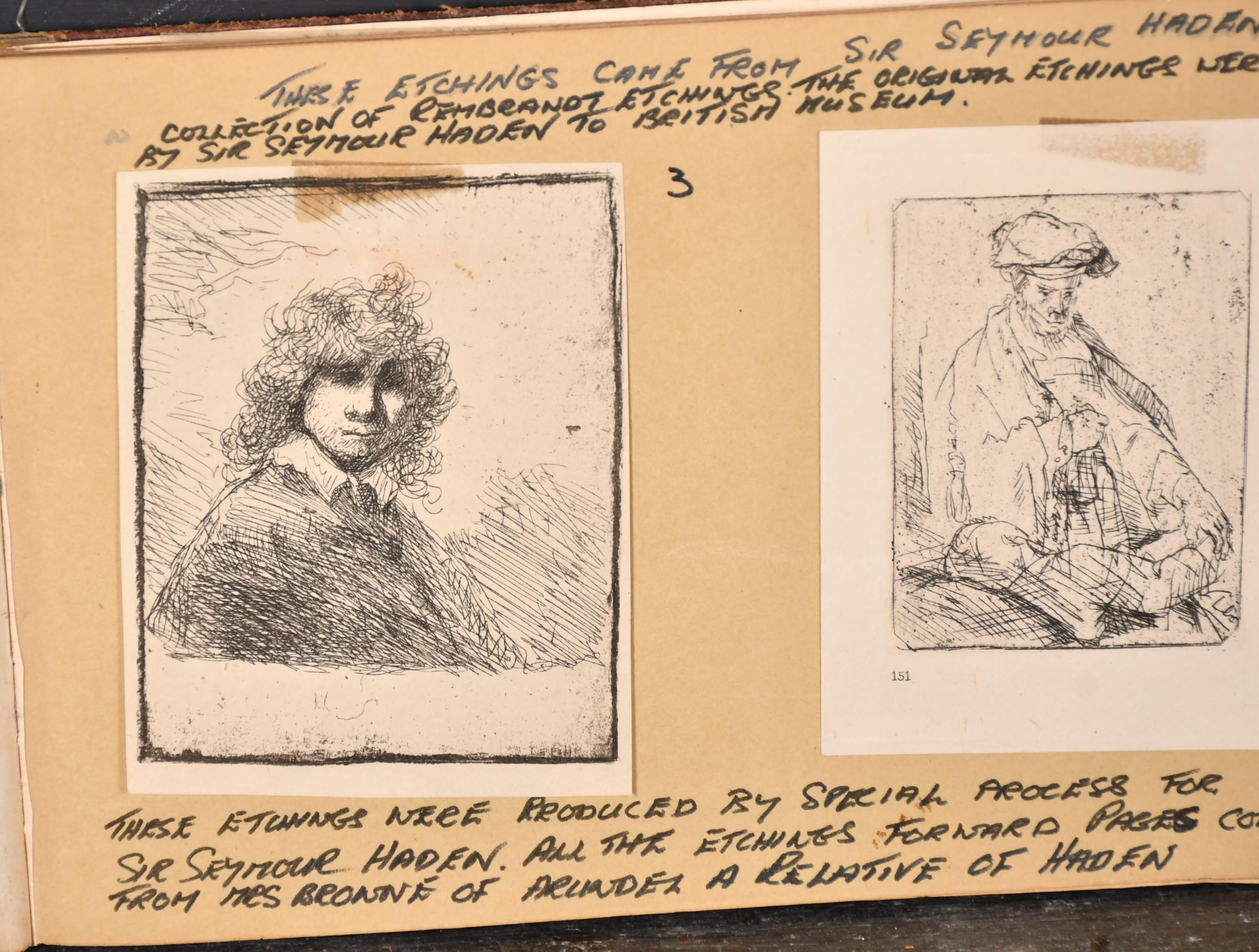 After Rembrandt van Rijn (1606-1669) Dutch. Head of a Man, Etching, Unframed 3.5" x 2.75" (8.9 x 7cm) together with sixteen others by the same hand contained in an album (17). Provenance: Sir Seymour Haden