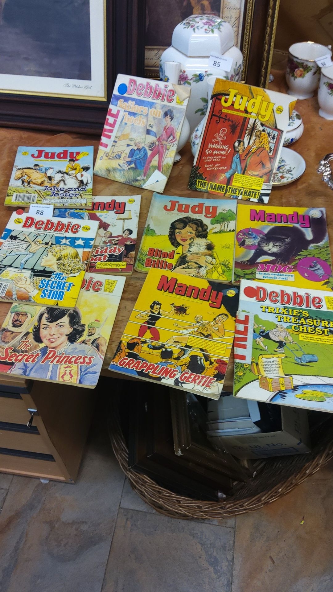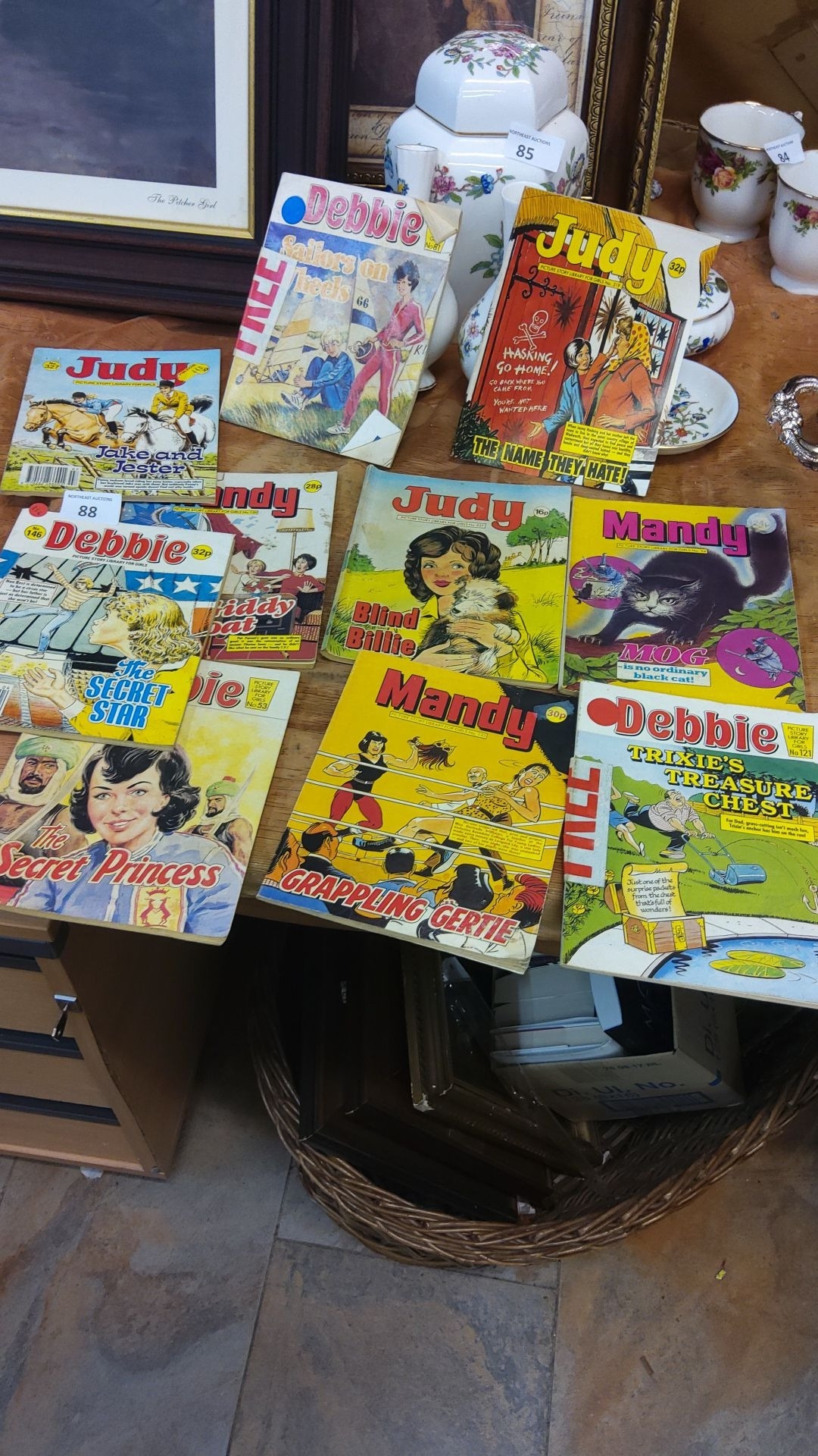 Collection of vintage British comics, including titles such as "Debbie," "Judy," and "Mandy." Various issues feature colorful cover art and engaging stories.