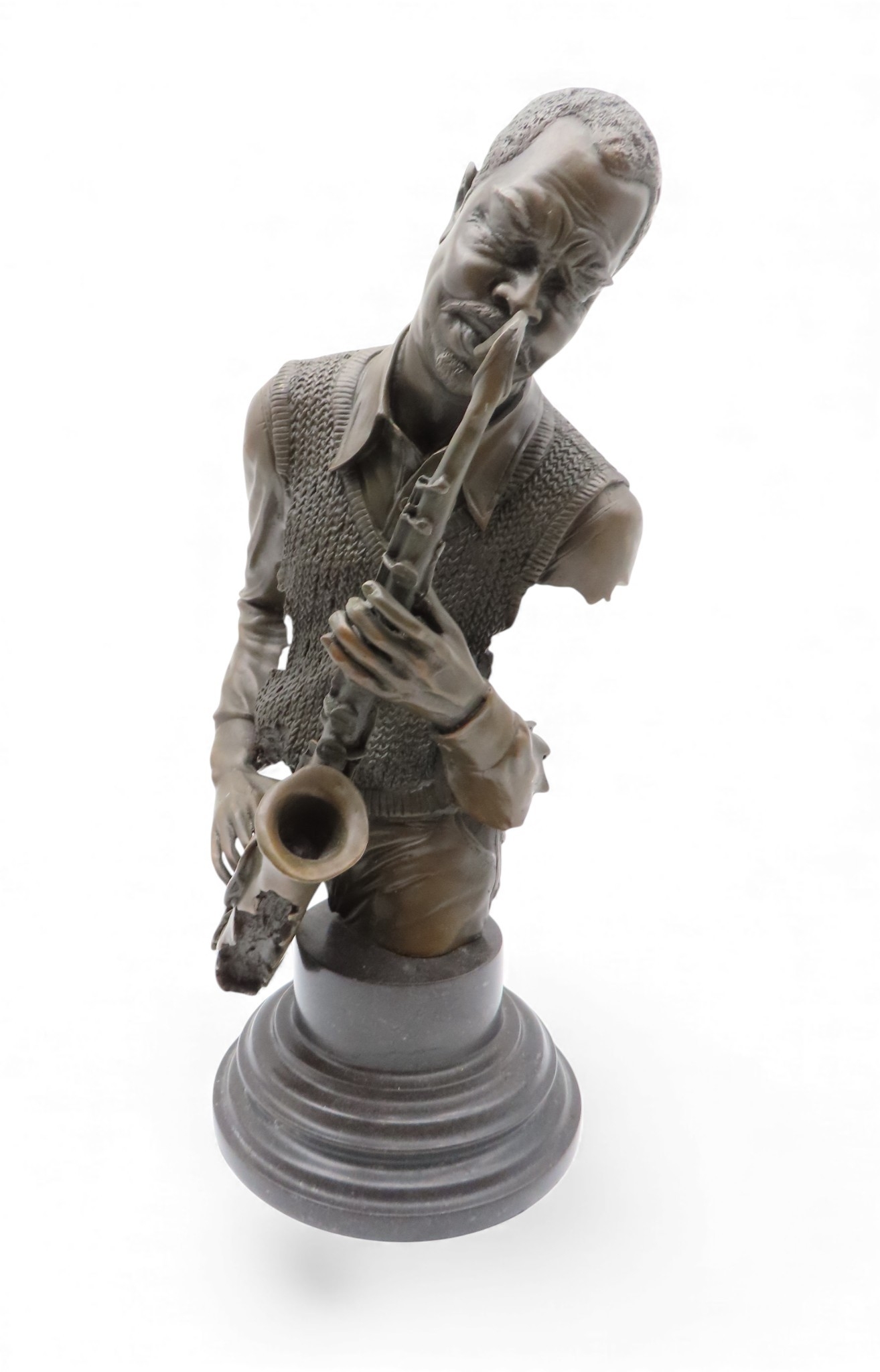 A contemporary of the saxophonist Charlie Parker, signed Pino and on a marble base