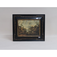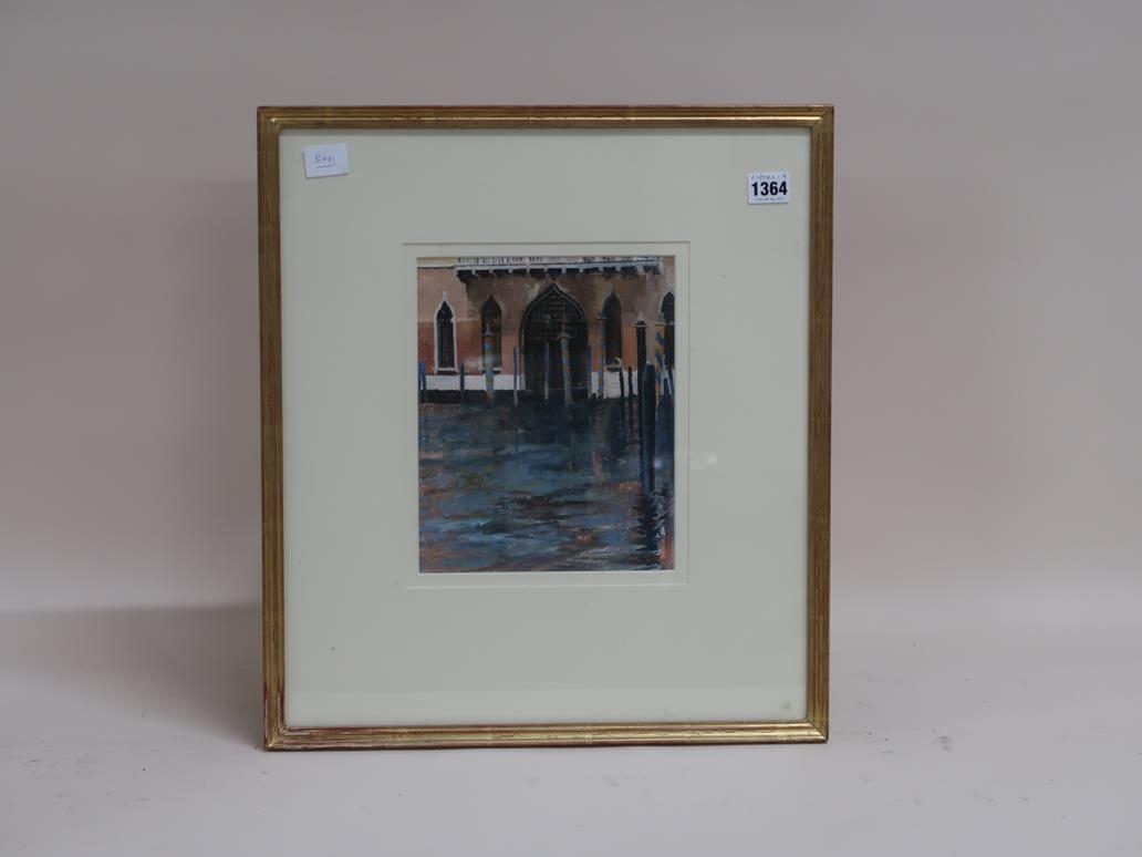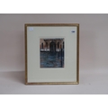 JOHN FISHER - GOLD AND CEIULEAN BY THE VEGETABLE MARKET, VENICE, SIGNED F/G, 24CM X 19CM