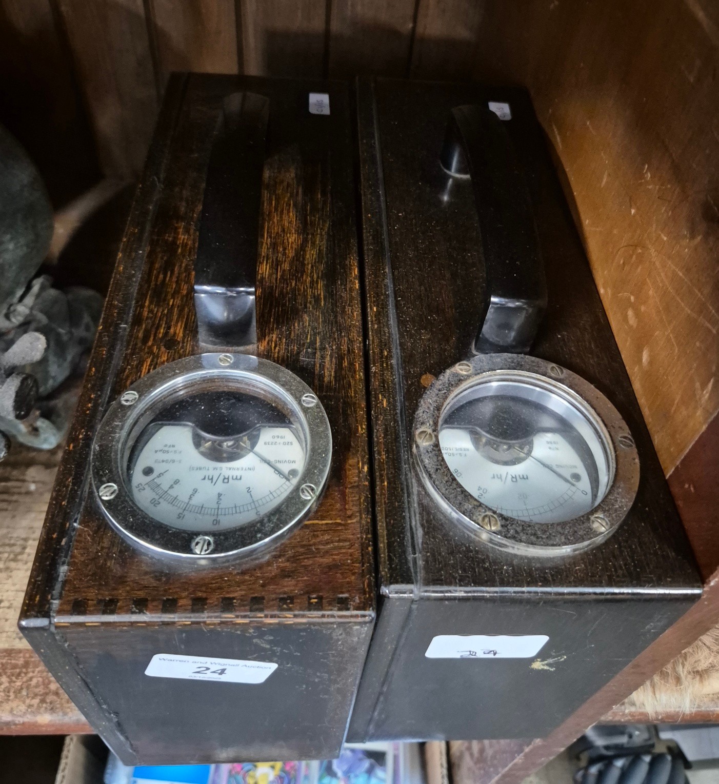 2 x 1950s cased Scintillation Ratemeters, Gamma Radiation detectors, 1 by Ericsson Nottingham, and 1 by Isotope Developments of Aldermaston
